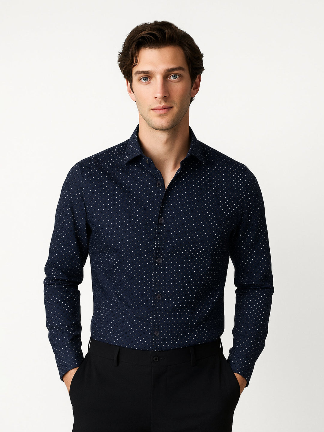 Brumano Ready To Wear Shirts Men 1 Piece Cotton Navy Blue Dobby Structured Shirt Luxe 0-32-025-4503 - Summer Collection