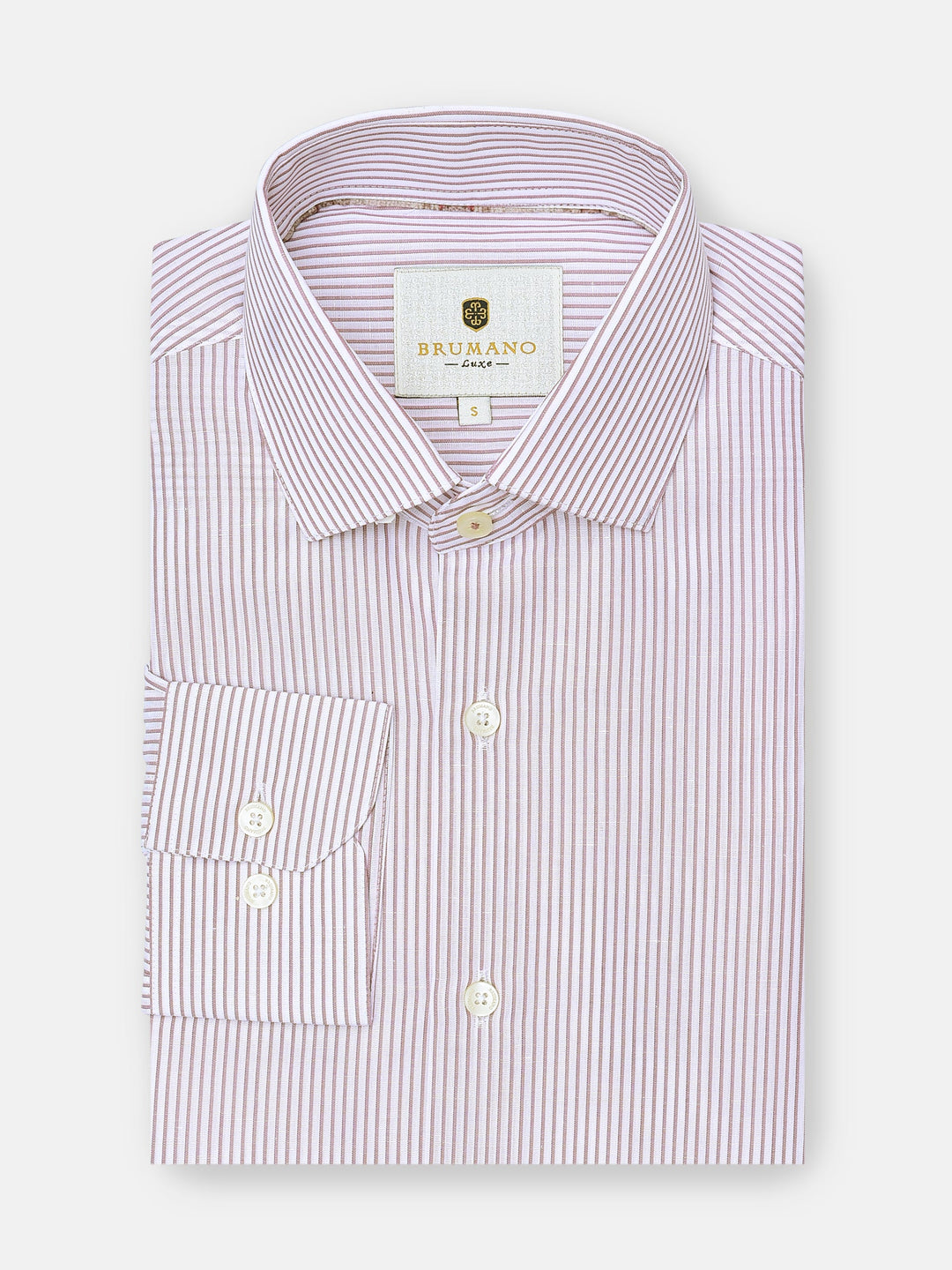 Brumano Ready To Wear Shirts Men 1 Piece Cotton Pink Pinstriped Linen Blended Formal Shirt 0-32-024-3299 - Summer Collection