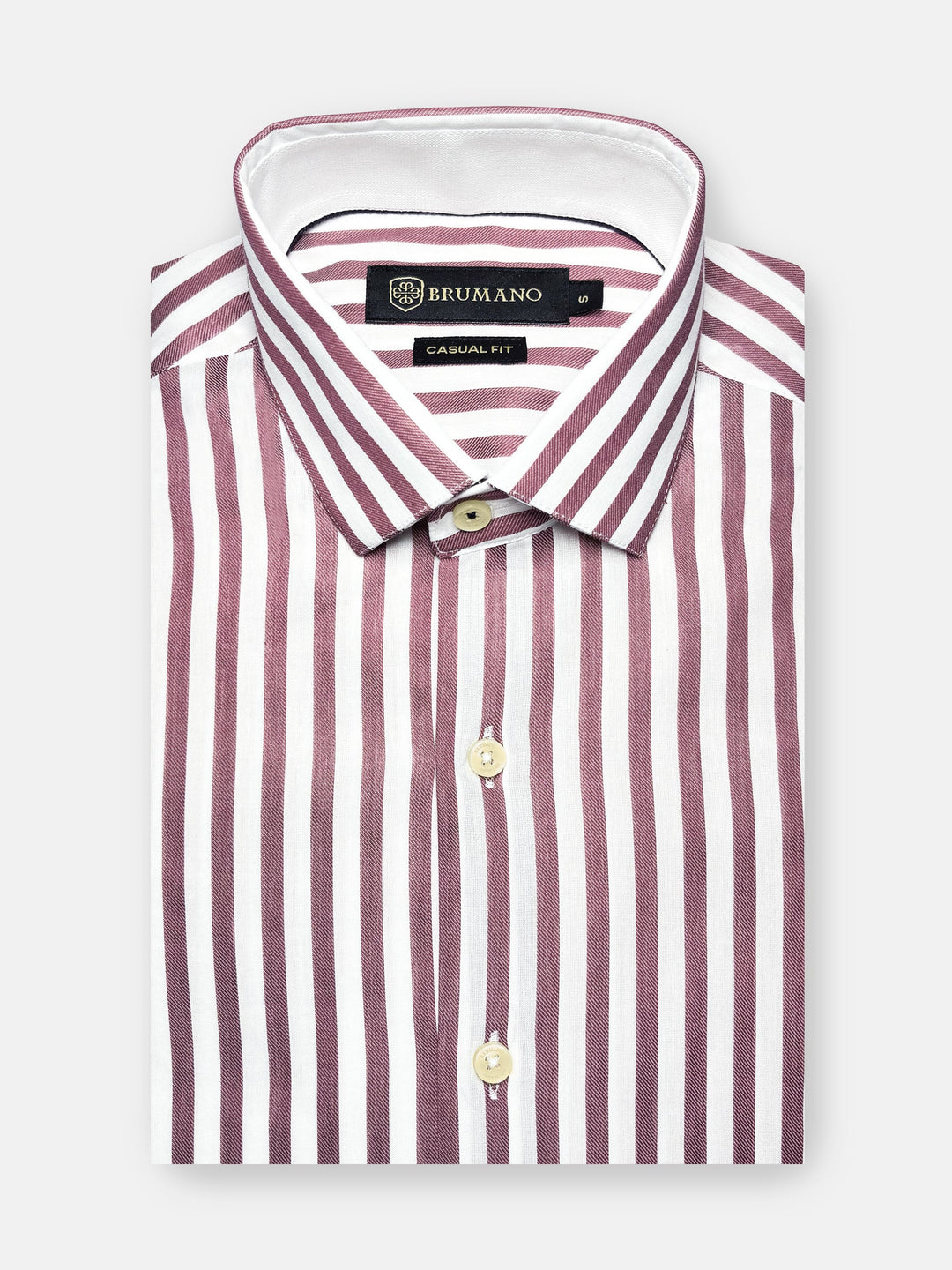 Brumano Ready To Wear Shirts Men 1 Piece Cotton Red & White Bengal Striped Formal Shirt 0-31-025-4508 - Summer Collection