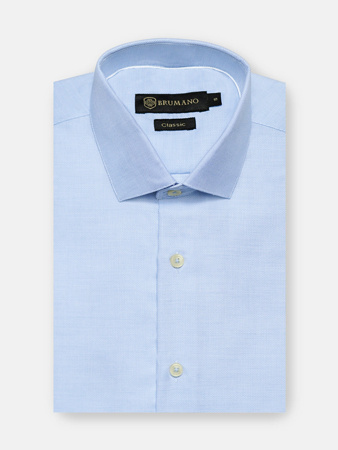 Brumano Ready To Wear Shirts Men 1 Piece Cotton Sky Blue Dobby Structured Formal Shirt 0-31-025-3355 - Summer Collection
