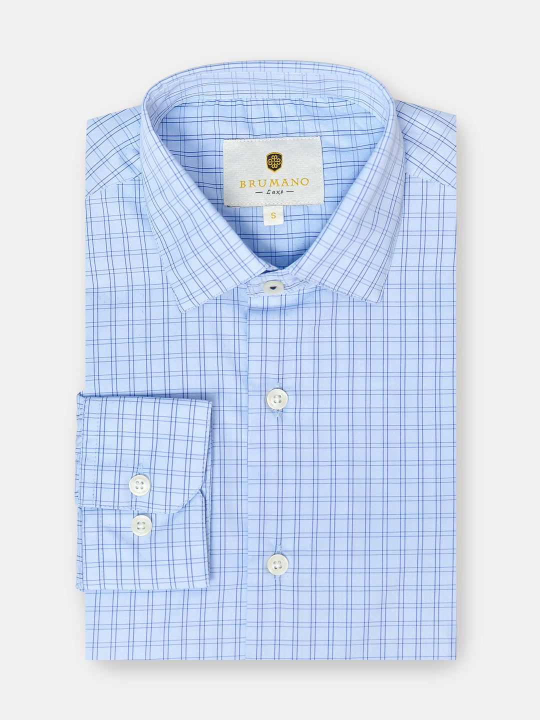 Brumano Ready To Wear Shirts Men 1 Piece Cotton Sky Blue Windowpane Checkered Shirt Luxe 0-32-025-0921 - Summer Collection