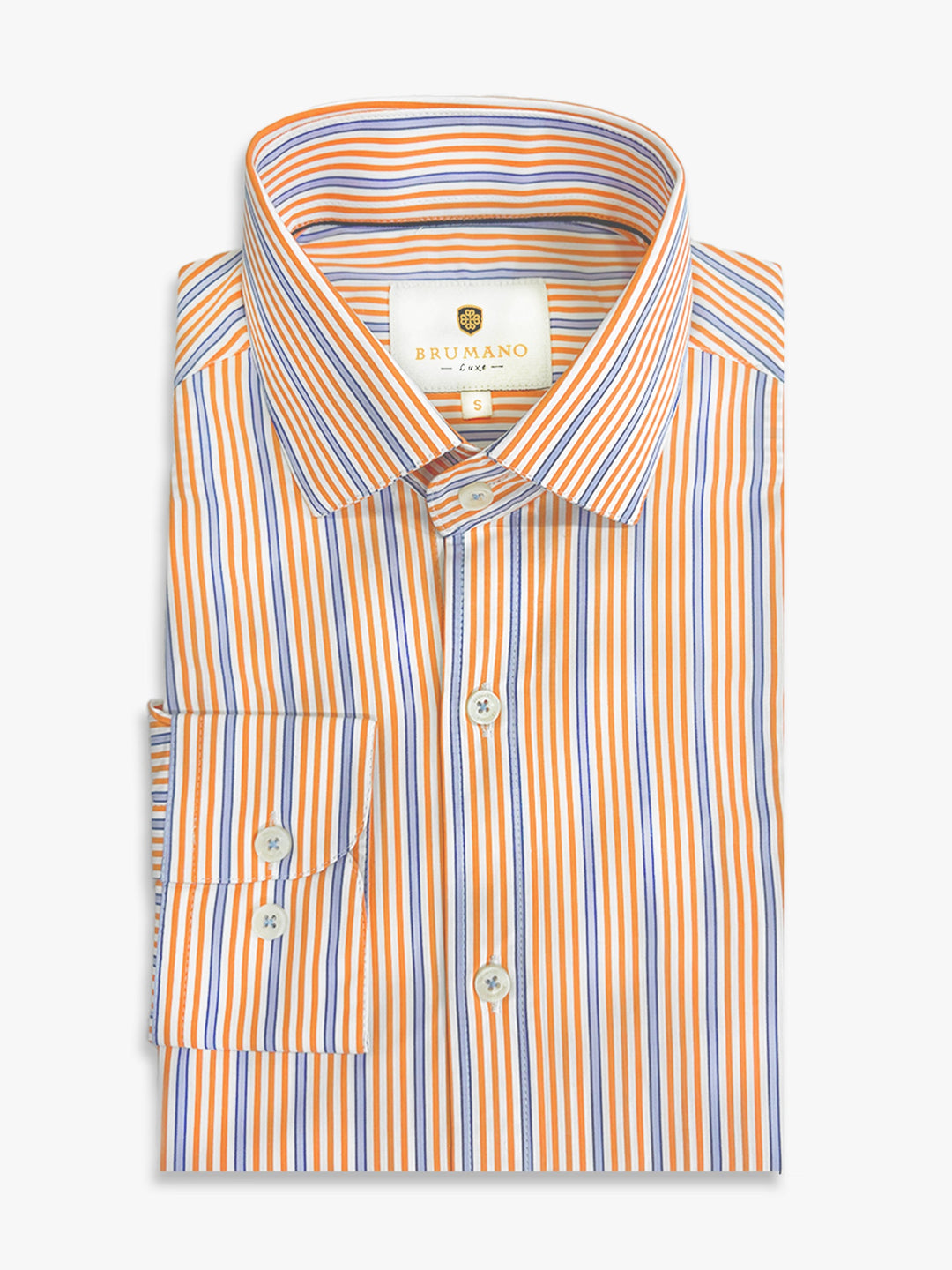 Brumano Ready To Wear Shirts Men 1 Piece Cotton Orange & Purple Striped Formal Shirt Luxe 0-32-025-1554 - Summer Collection