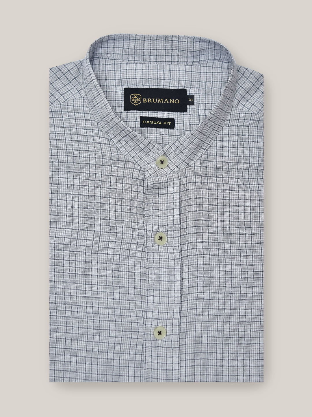 Brumano Ready To Wear Shirts Men 1 Piece Cotton Grey Cotton/Linen Mao Collar Checkered Shirt 0-31-023-2169 - Summer Collection