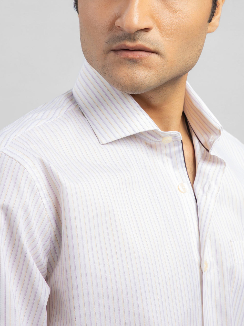 Brumano Ready To Wear Shirts Men 1 Piece Cotton White & Purple Striped Formal Shirt 0-31-023-1670 - Summer Collection