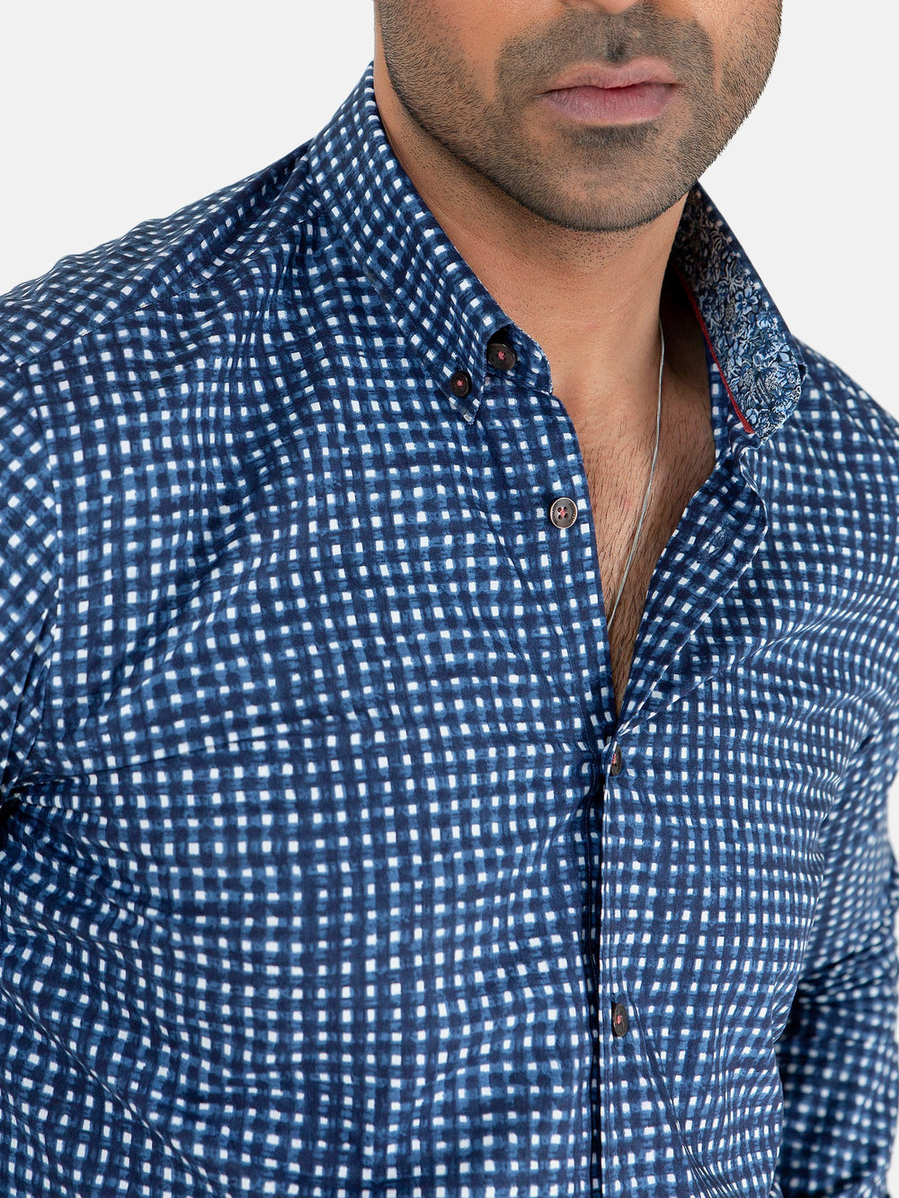Brumano Ready To Wear Shirts Men 1 Piece Cotton Blue Houndstooth Patterned Linen Shirt 0-31-025-4462 - Summer Collection