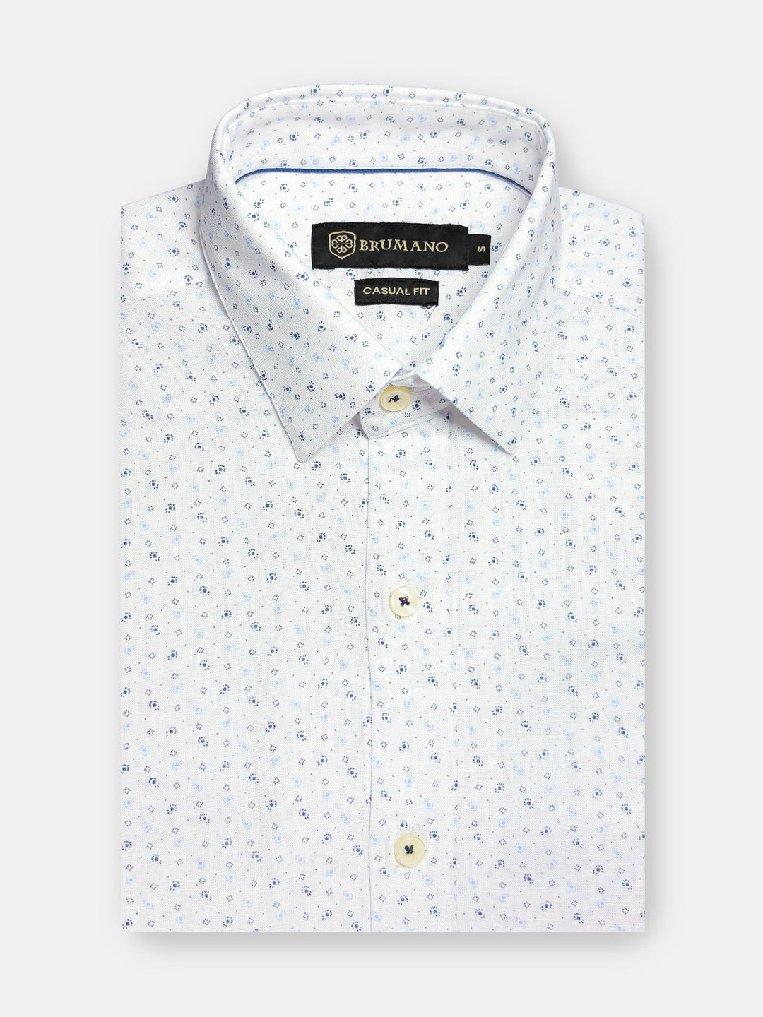 Brumano Ready To Wear Shirts Men 1 Piece Cotton White & Blue Formal Shirt With Printed Collar 0-32-023-2094 - Summer Collection