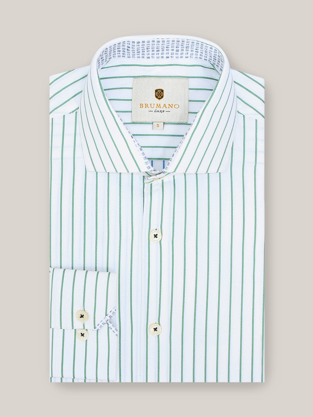 Brumano Ready To Wear Shirts Men 1 Piece Cotton White & Green Striped Formal Shirt 0-32-023-2035 - Summer Collection