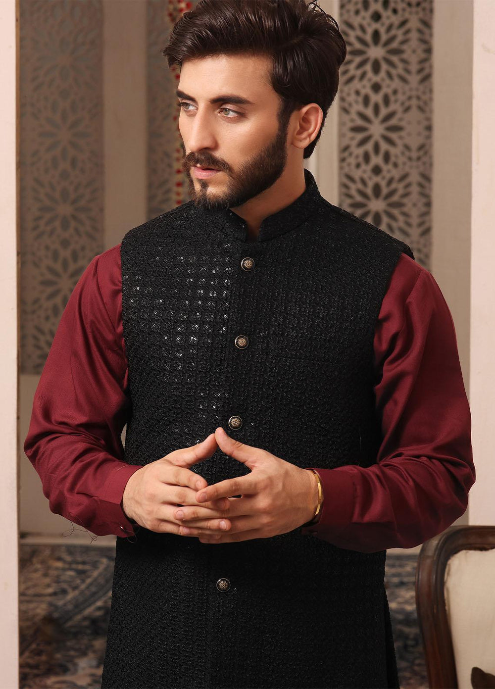 Mens Formal Jamawar Waistcoat with Computer Embroidery