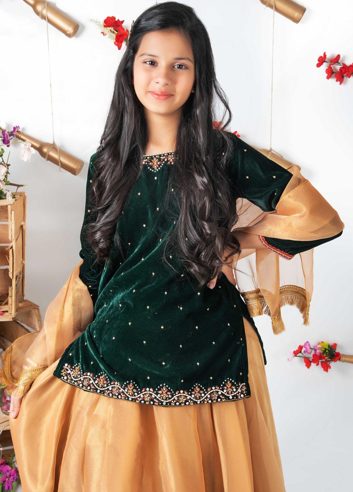 Modest Fancy 3 Piece Suit for Girls - MD21F 4005 Green
