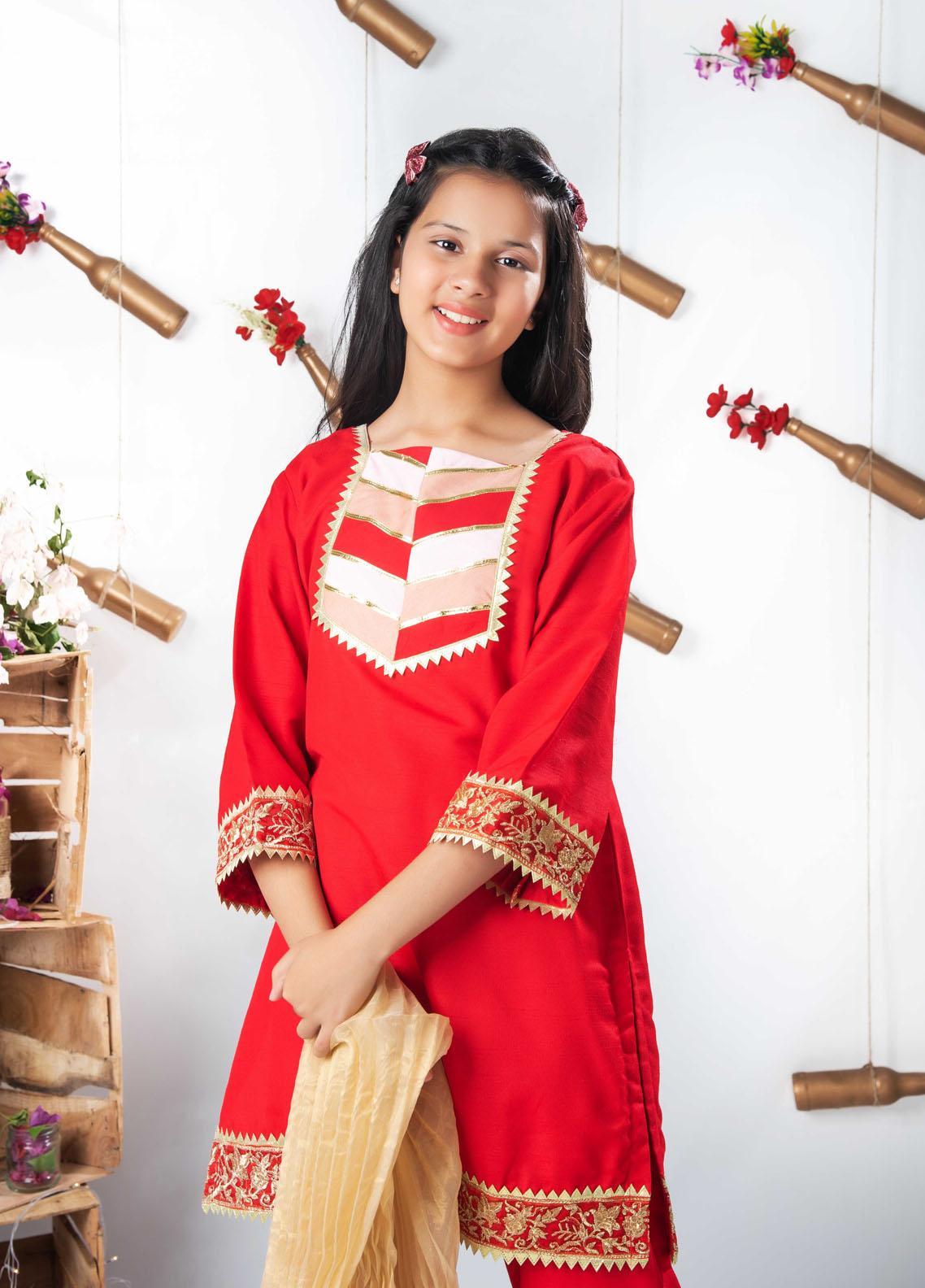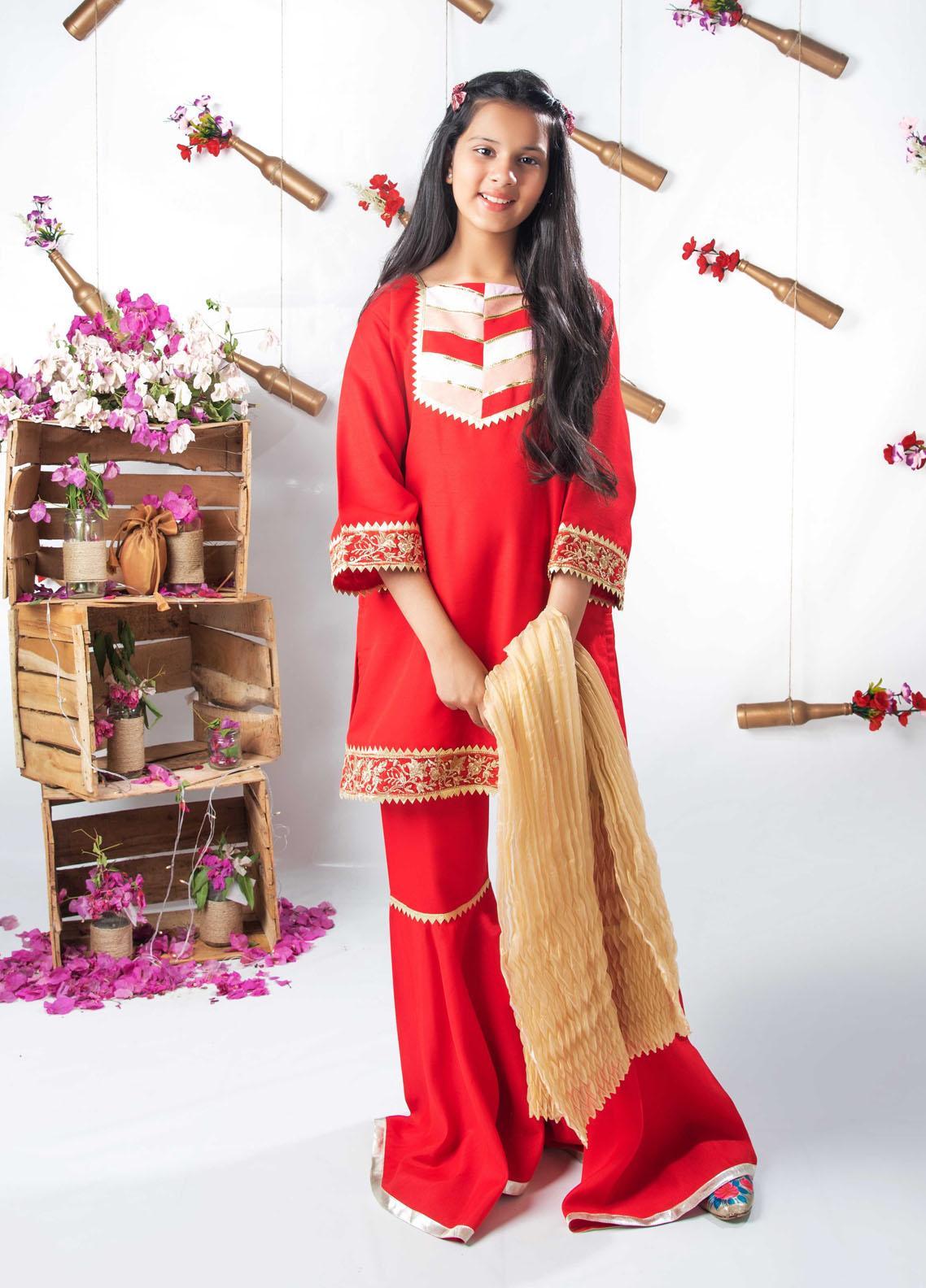 Modest  Fancy Girls 3 Piece Suit -  MD21F 4545 Red