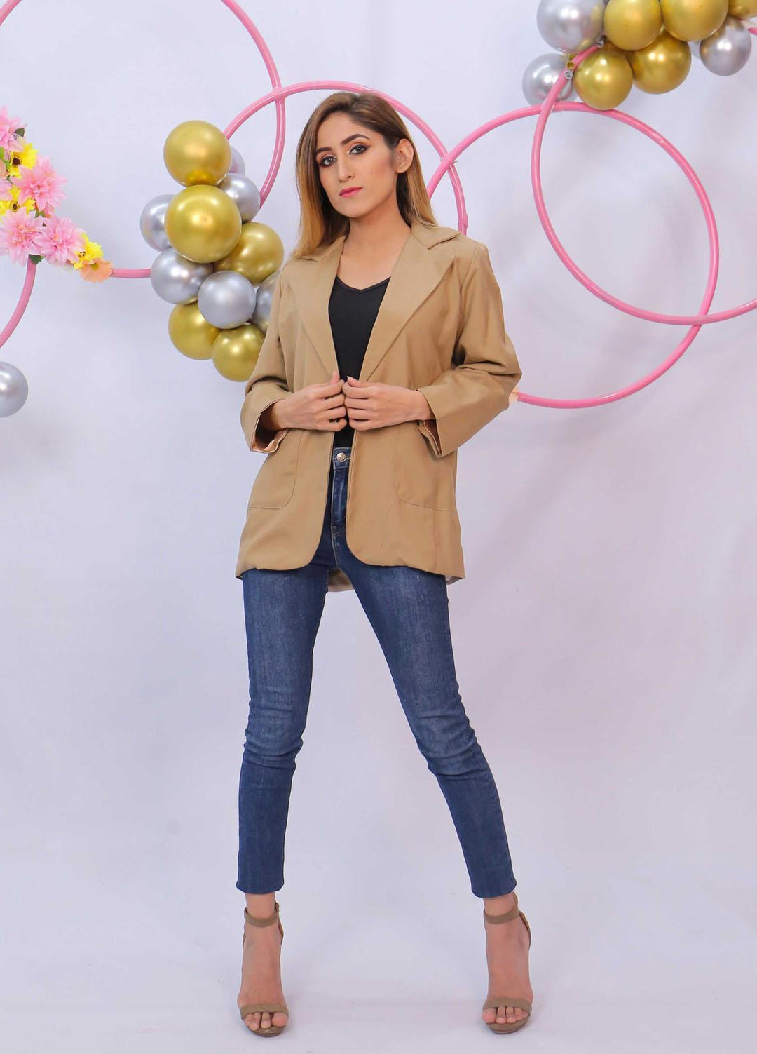 Size worn by model: Small Suit: 1 piece Fabric: Woven cotton Sizes: XS,S,M,L Detailing: Notch collar jacket is all set to give you a boss look in your next meeting Color Options: Skin, Orange and Pink