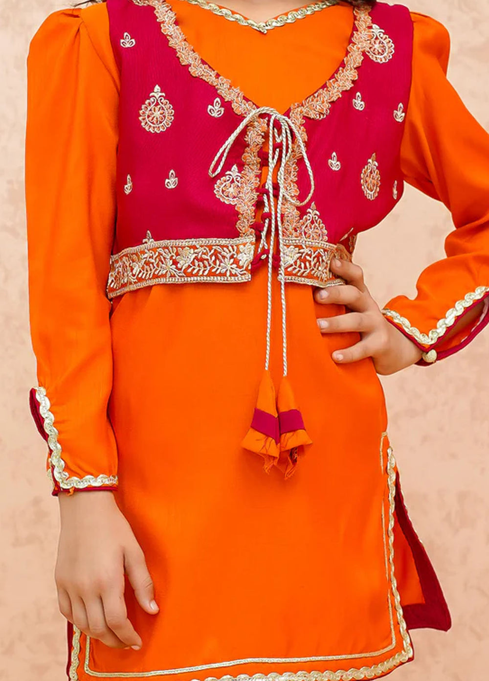 Modest Pret Embroidered Rawsilk 3 Piece Suit Orange 9035