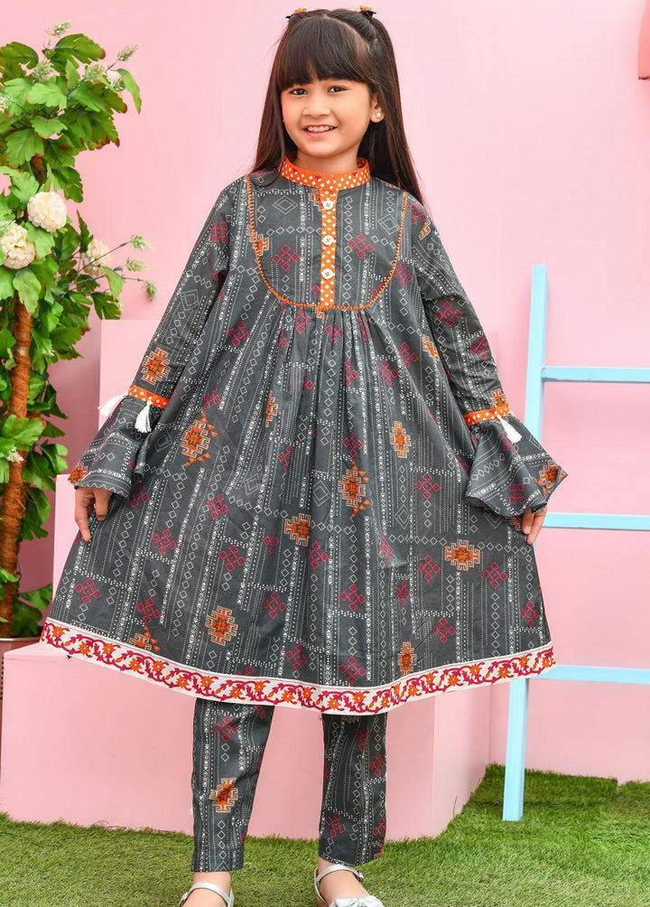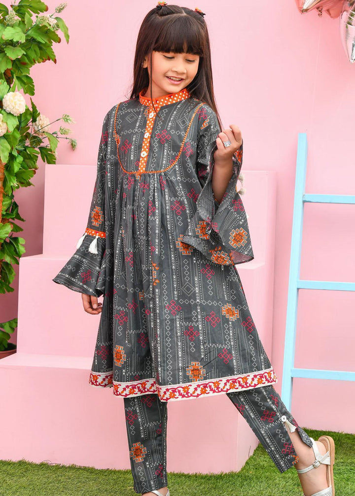 A beautiful grey ensemble 2-piece set with tassel details. It is designed with the latest kid's fashion trends in mind this set feature a stunning floral pattern with a vibrant color print.