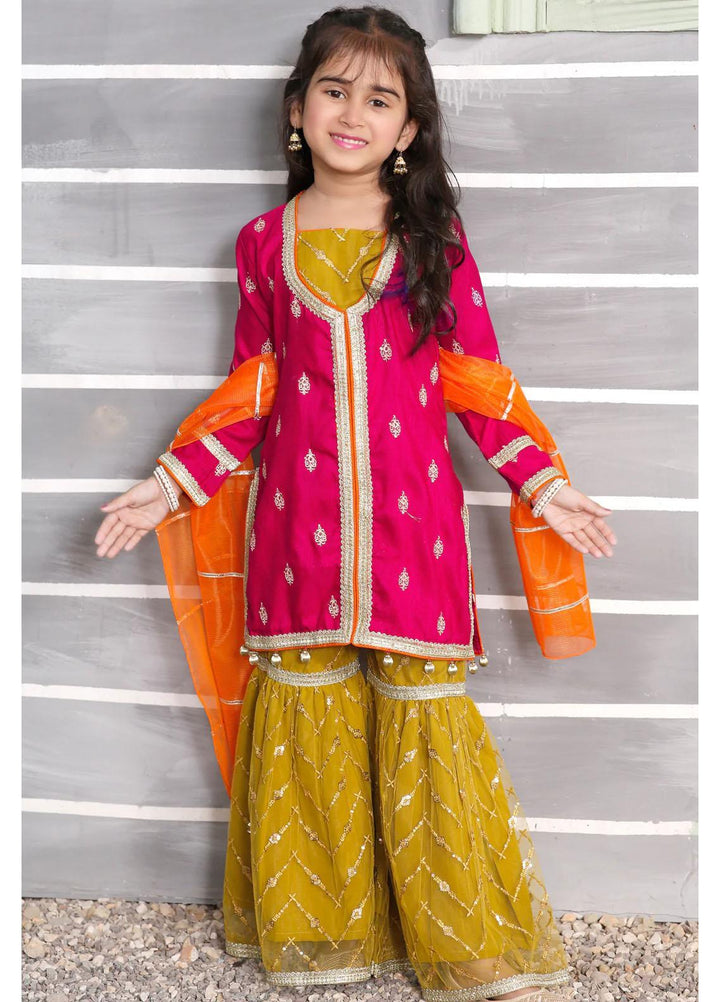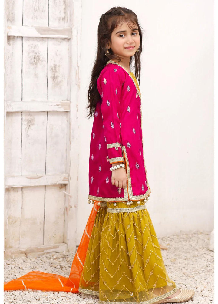 Modest Raw Silk Pret 3 Piece Suit for Girls - Mushq 6035-Hot Pink-20