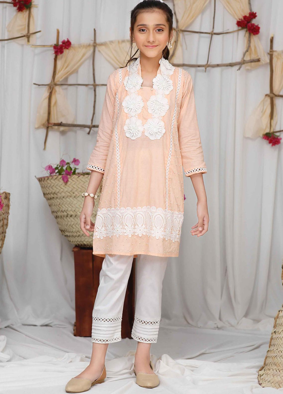 The ready to wear kids collection is fine work of beautiful colors amalgamated with intricate detailing band embroideries. Taking the kids' age of fashion into consideration, the collection is on point having beautiful frocks, kurtis and 3 pc koti style dresses to make your kids look the cutest.