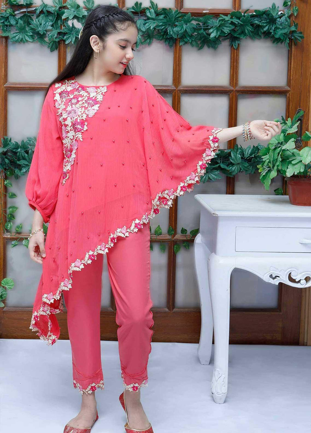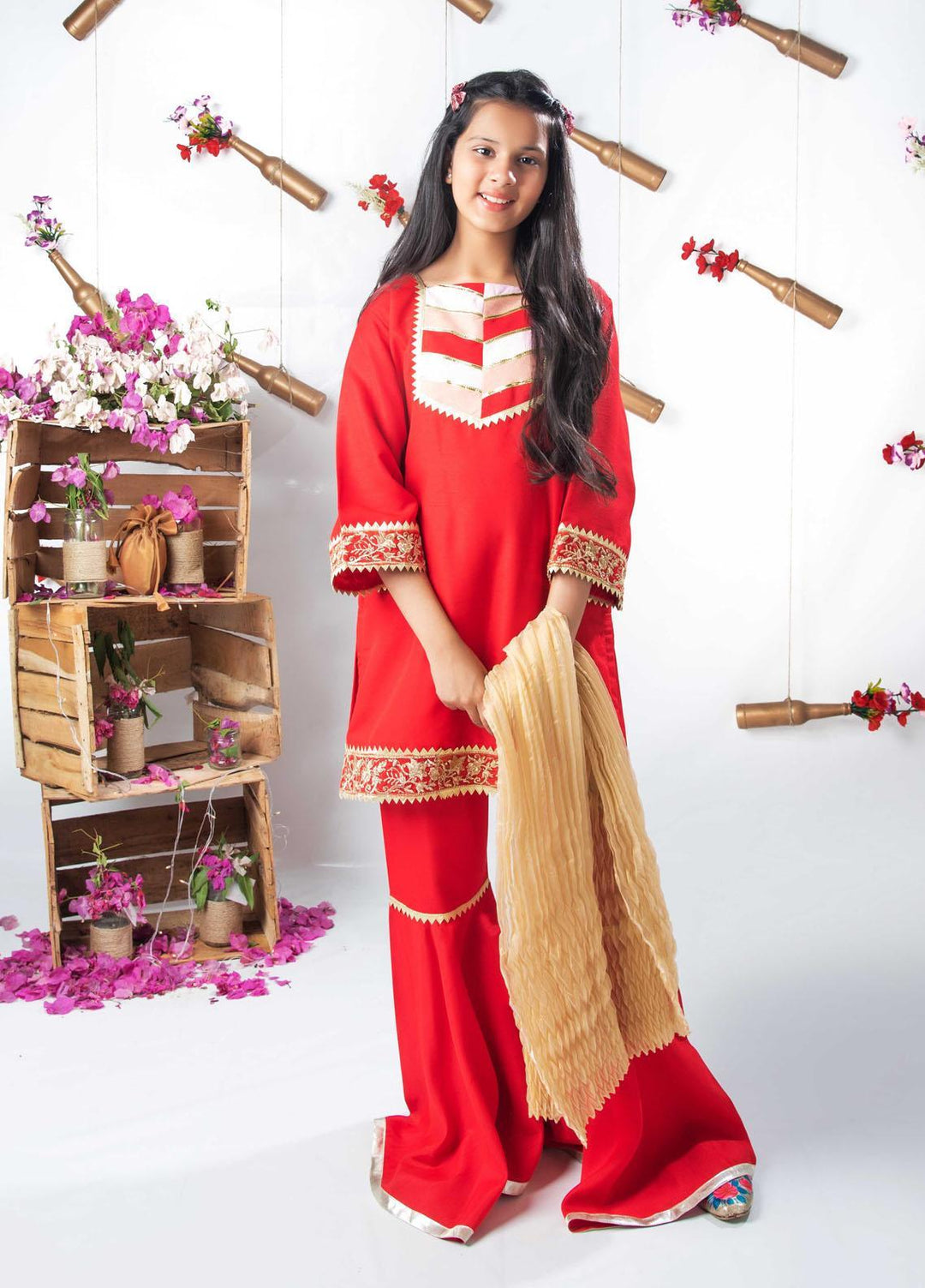 The ready to wear kids collection is fine work of beautiful colors amalgamated with intricate detailing band embroideries. Taking the kids' age of fashion into consideration, the collection is on point having beautiful frocks, kurtis and 3 pc koti style dresses to make your kids look the cutest.
