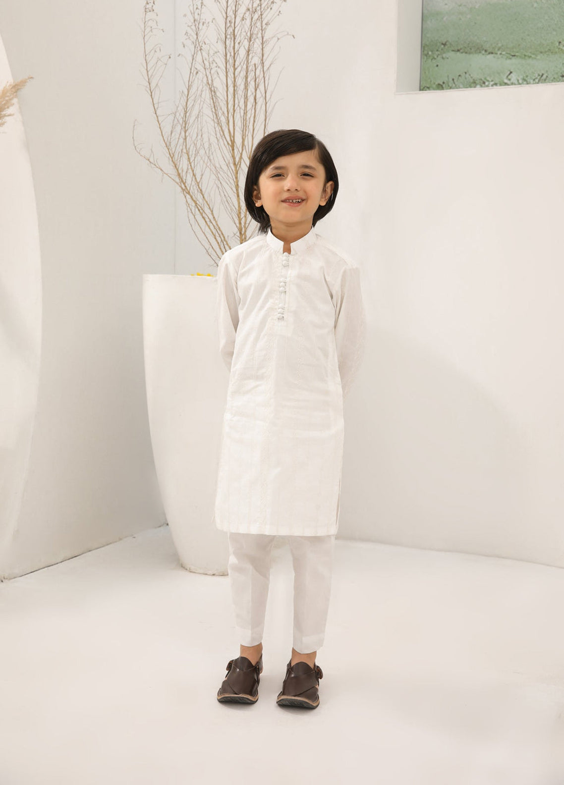 Muraqsh Ready To Wear Boys Off White Cotton Embroidered Kurta Trouser Loop Buttons MUR-OWECK - Summer Collection