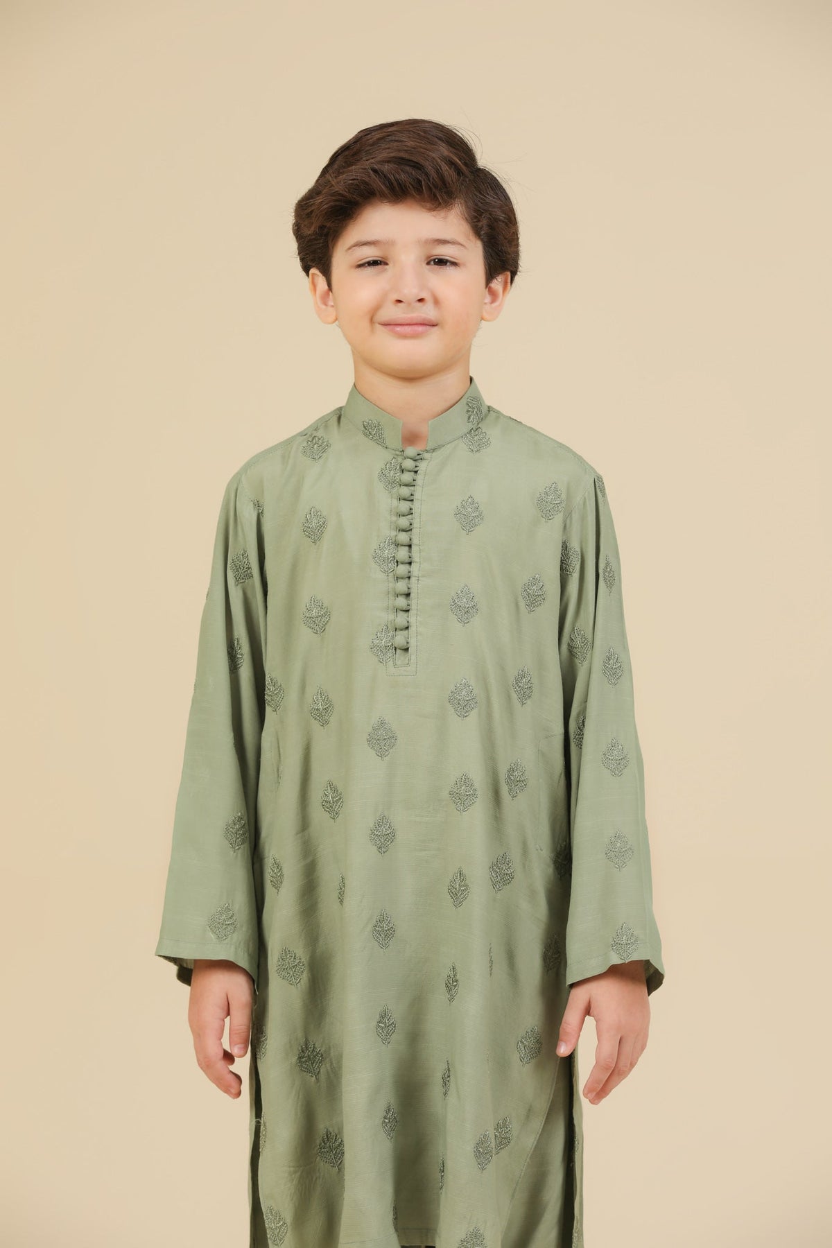 Muraqsh Ready To Wear Embroidered Silk Boys Bahaar Mint Kurta Trouser MUR-B-GRS - Summer Collection