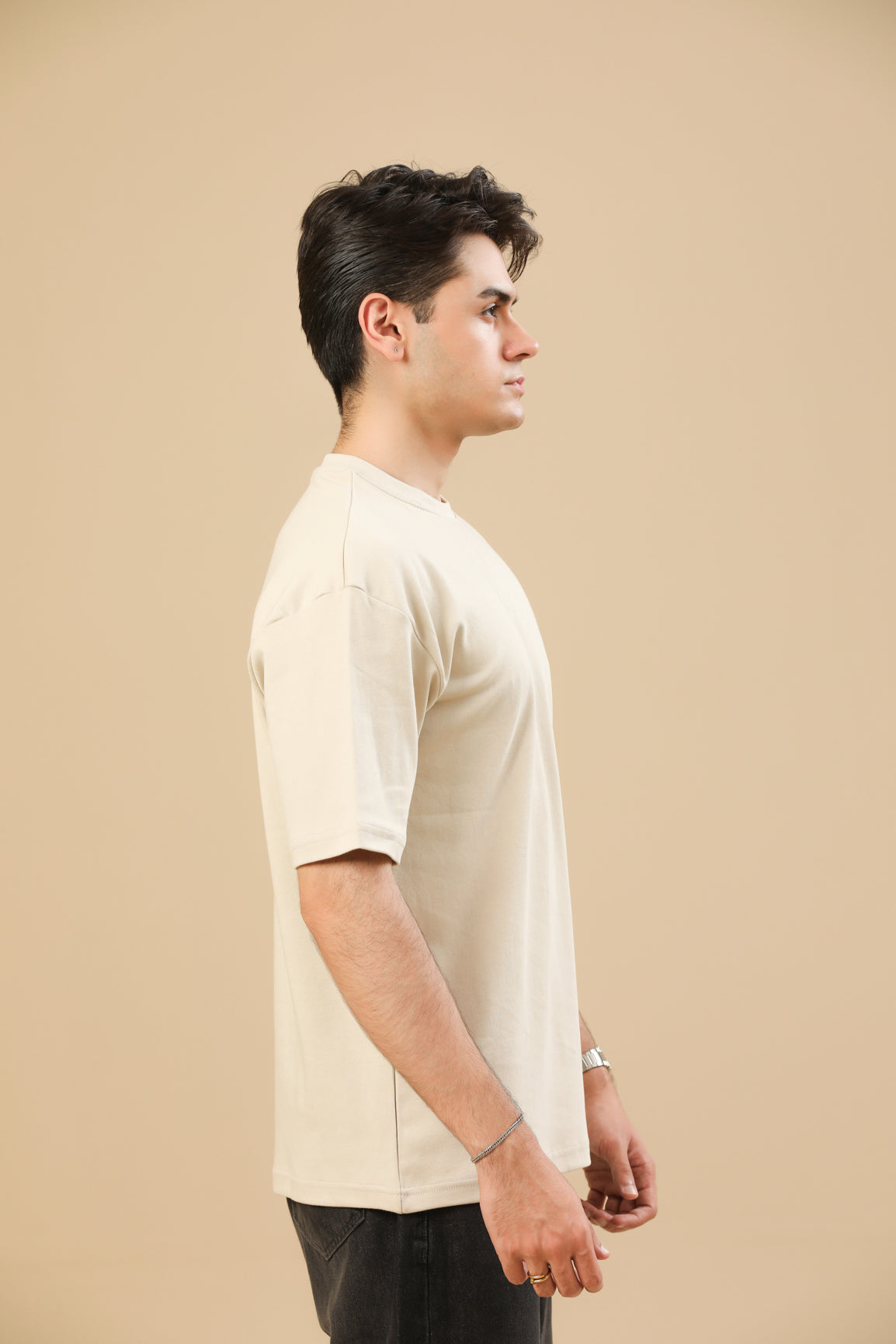 Stay Effortlessly Cool In This Beige Interlock Oversized Tee. Smooth Texture, Relaxed Fit, And Perfect For Everyday Summer Comfort.