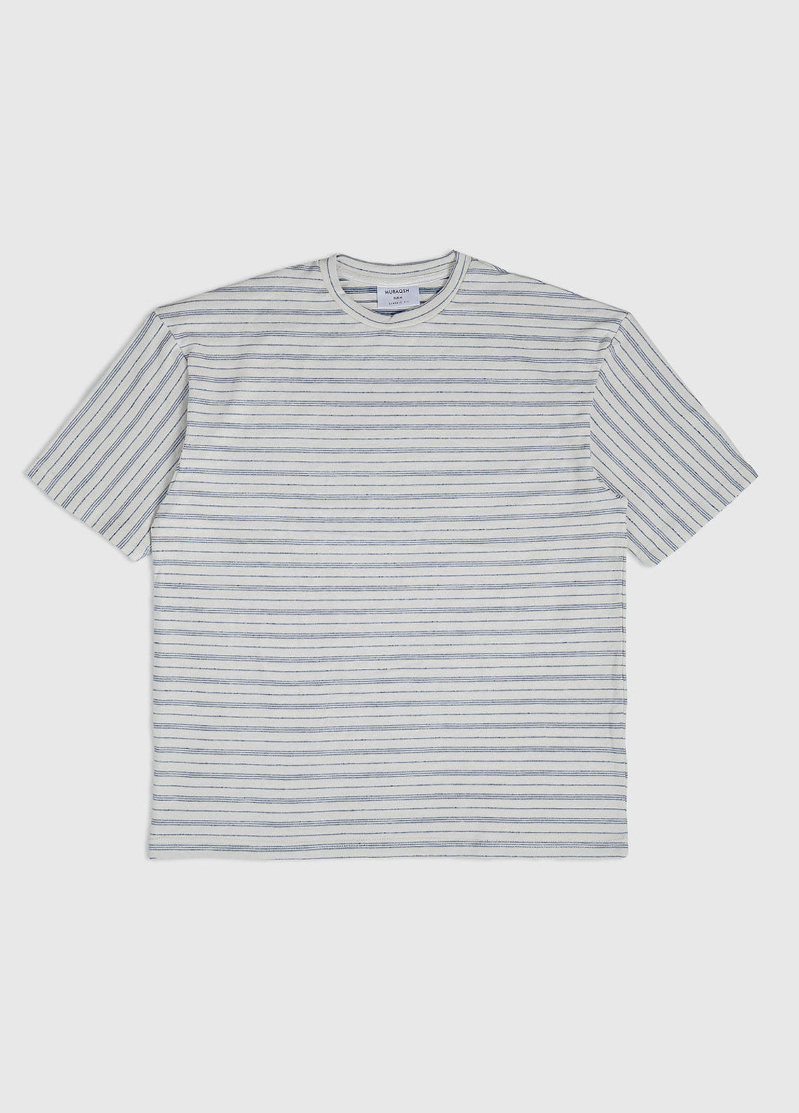 Stay Cool And Classic In This Beige White Striper Oversized Tee. Soft, Relaxed, And Perfect For Everyday Summer Comfort.