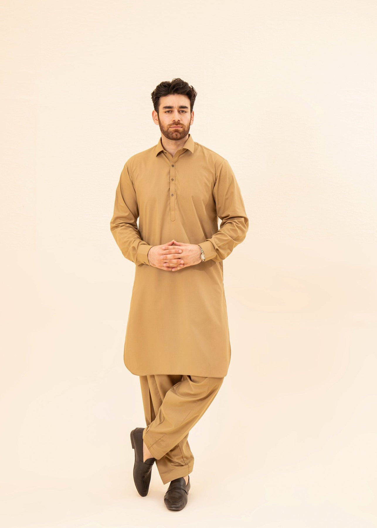 Muraqsh Ready To Wear Solids Cotton Men Camel Kurta Trouser/Shalwar MUR-CKTHL - Summer Collection