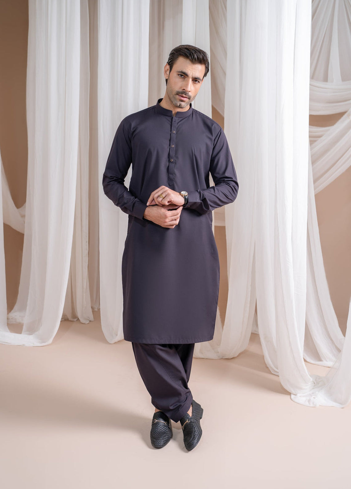 Muraqsh Ready To Wear Solids Cotton Men Deep Burgundy Luxury Blended Kurta Shalwar MUR-DBLBK - Summer Collection