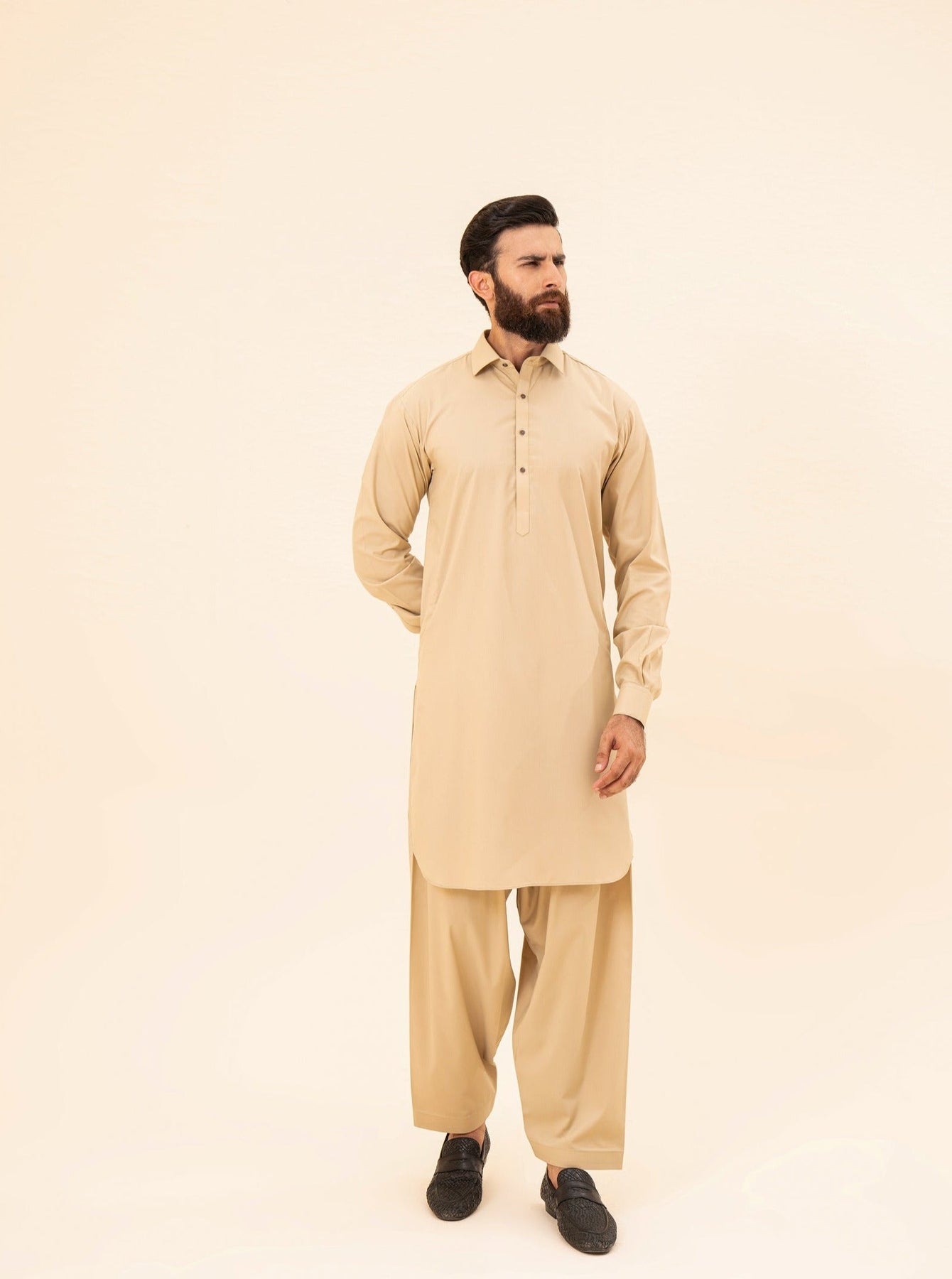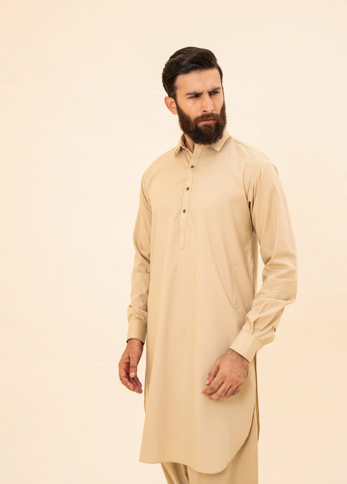 Embrace Elegant Simplicity With The Ivory French Collar Shalwar Kameez, Designed For A Classic Fit And Subtle Charm.