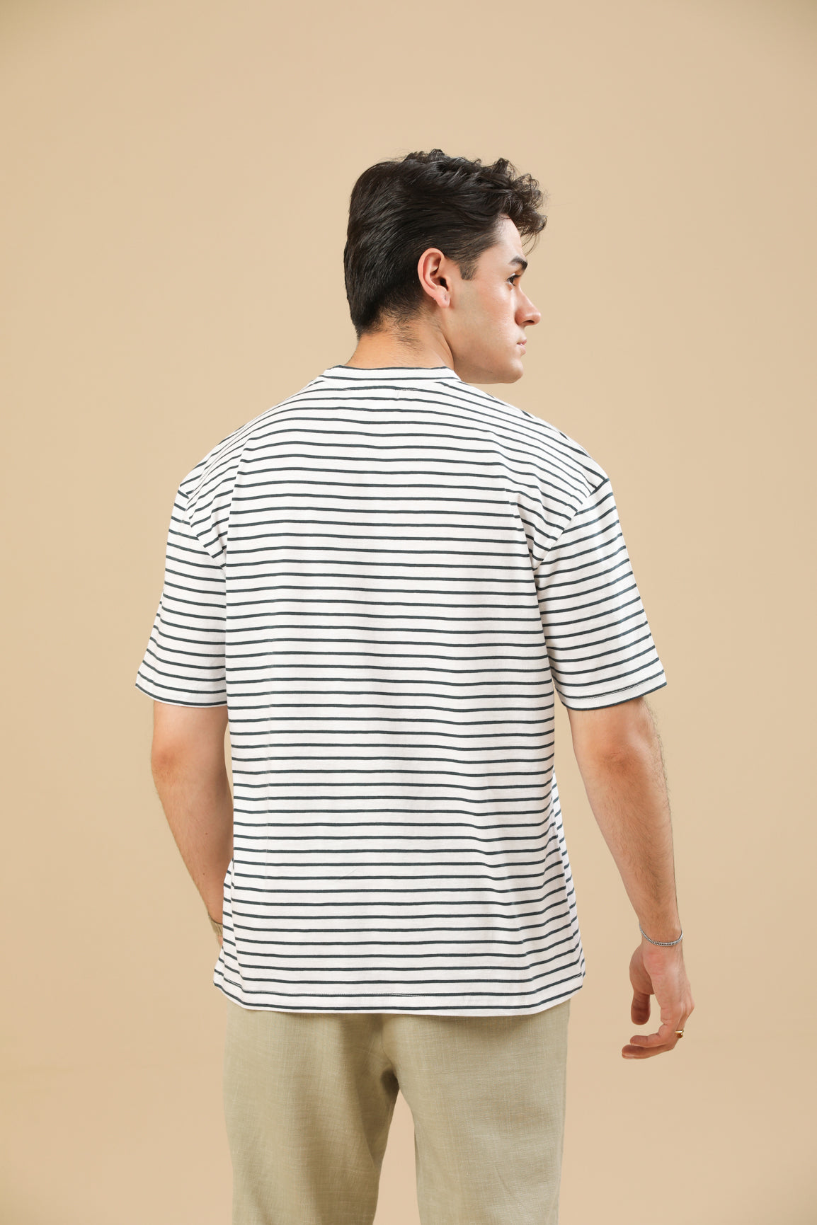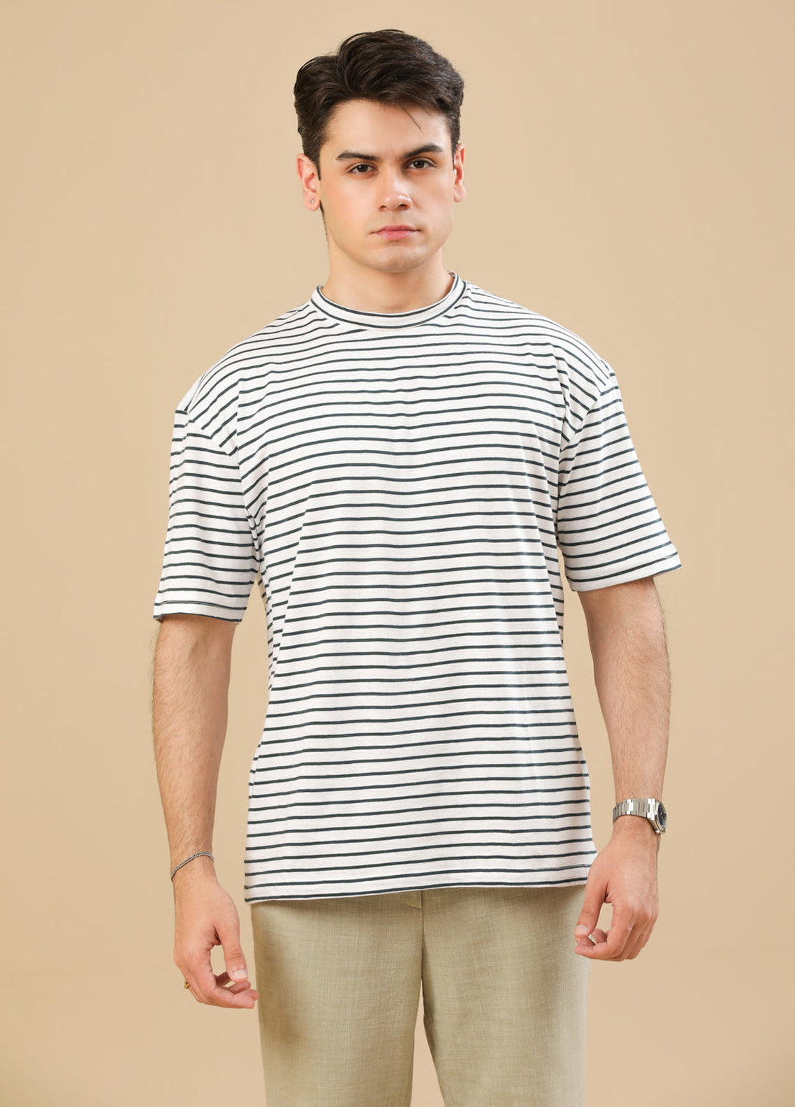 Go Effortless With This Off White Striper Oversized Tee. Relaxed Fit, Soft Feel, And A Clean Look For Everyday Summer Style.