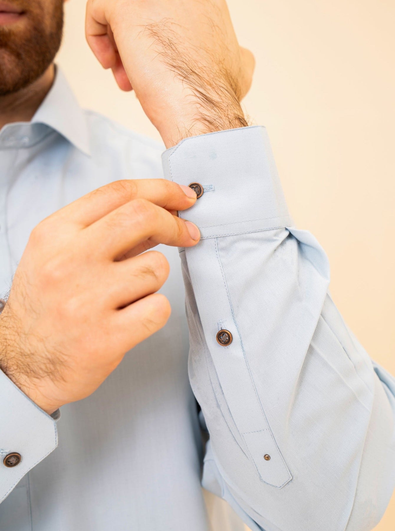 Experience Fresh Style With The Sky Blue French Collar Shalwar Kameez, Crafted For A Classic Fit And Modern Flair.