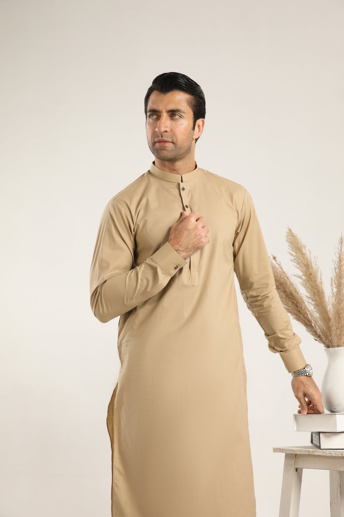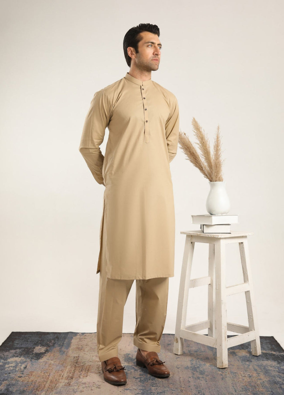 Made from breathable cotton, this 2-piece set of Kurta Shalwar is ideal for summer. The classic fit and premium quality ensure a comfortable and stylish option for any occasion.
