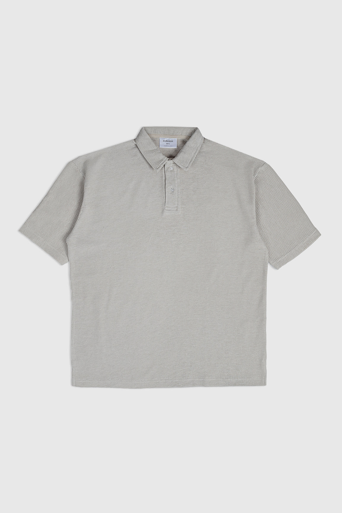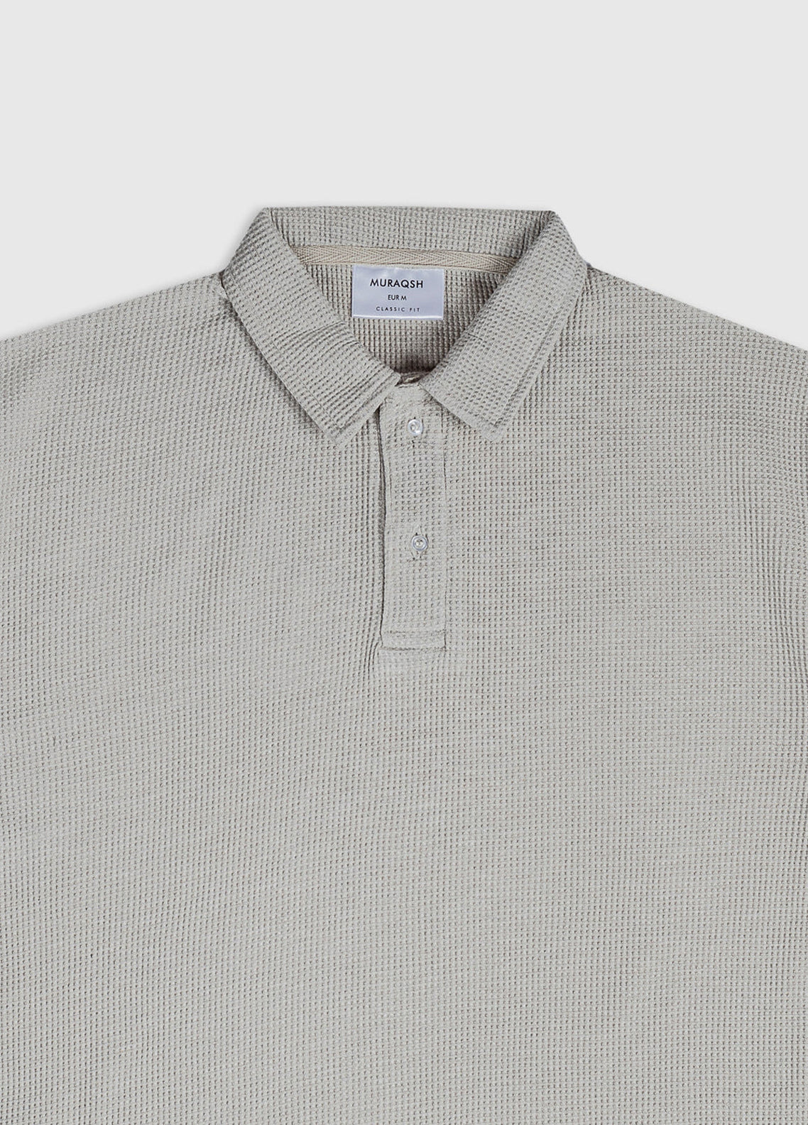 Stay Effortlessly Cool With This Beige White Oversized Waffle Polo. Light, Textured, And Perfect For Summer Comfort.