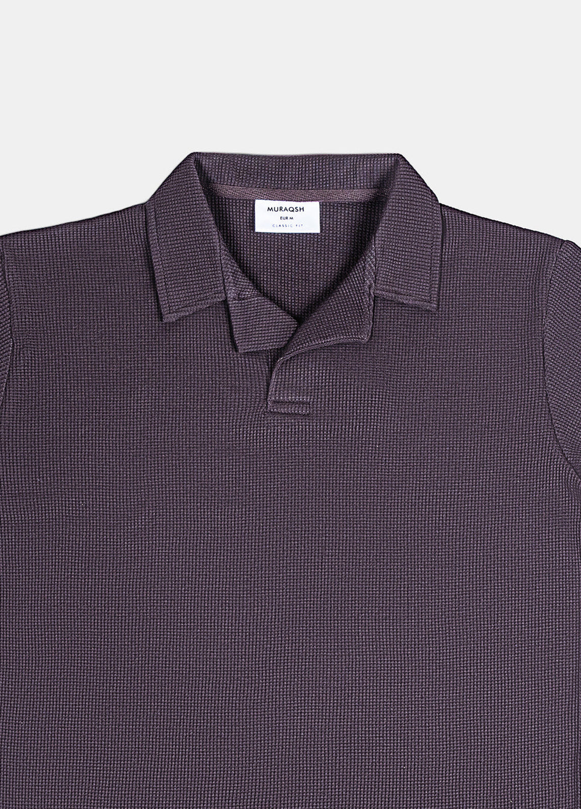 Add Warmth To Your Summer Style With This Dark Brown Waffle Revere Polo. Lightweight, Textured, And Perfect For Everyday Menswear Looks.