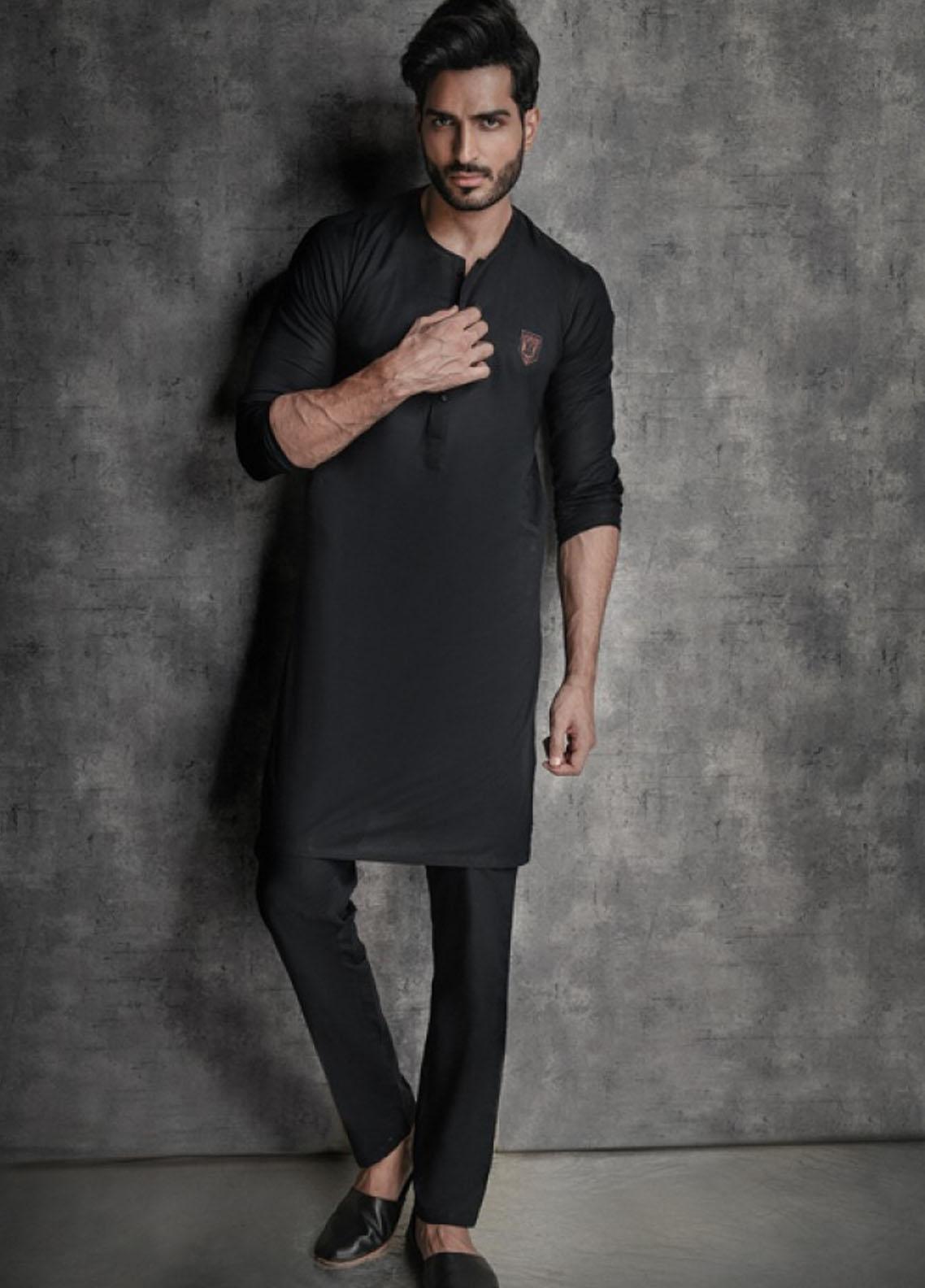 Premium Black Kurta Pajama Featuring Embellish Monogram On Front With Unique Details