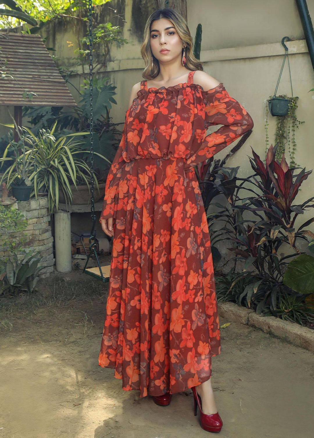 Nazmina Pret Chiffon Western Dress NZ23TSN SCARLET PARROT FR-577