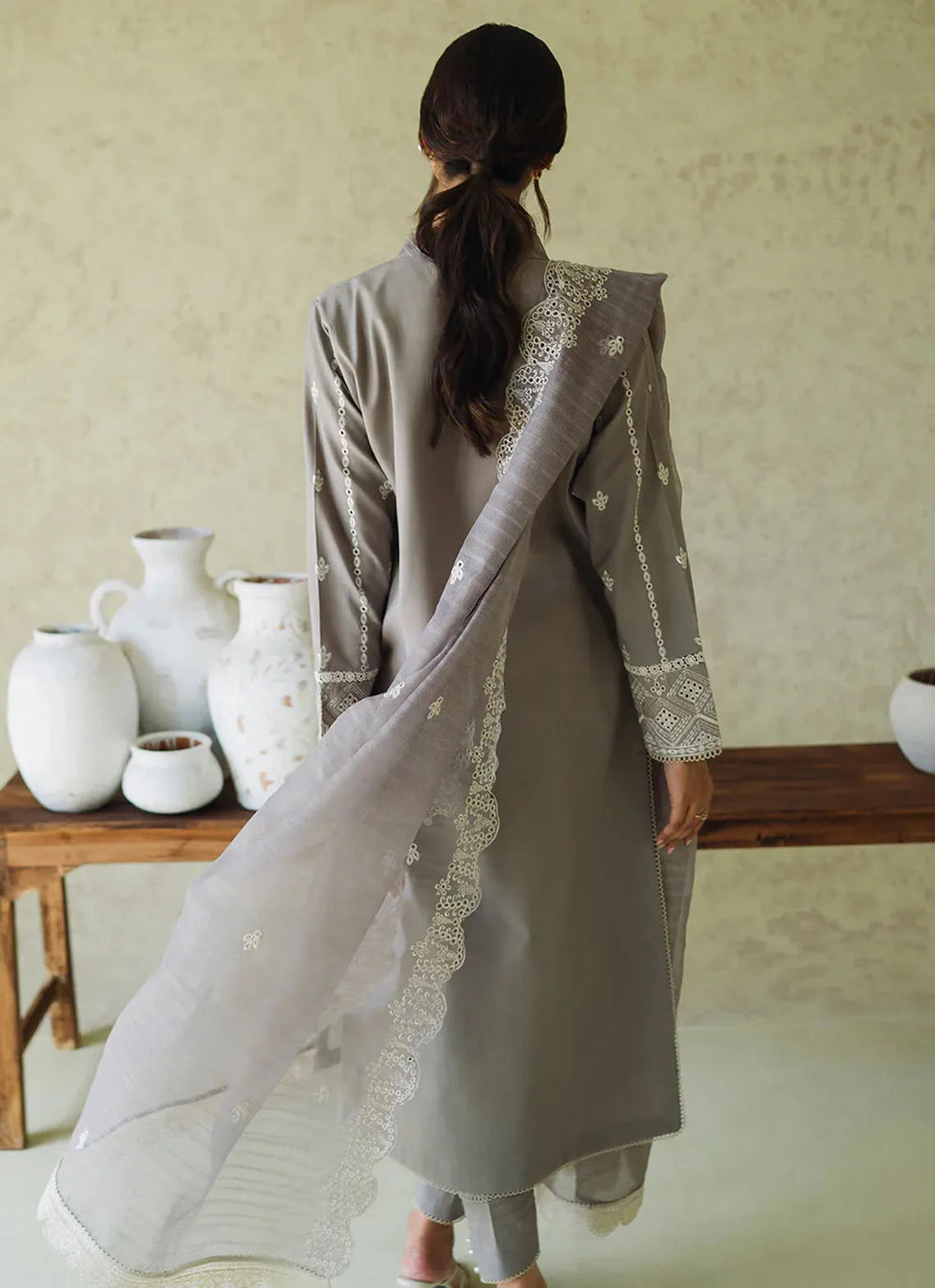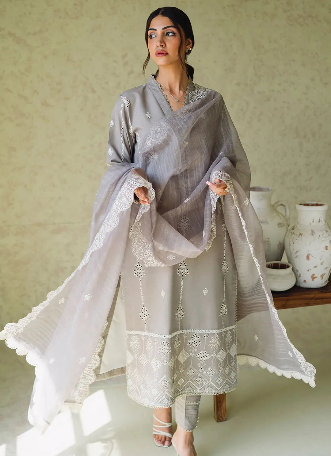 Neeshay Monochrome Embroidered Lawn Suit Unstitched 3 Piece NSH24M Ash - Summer Collection