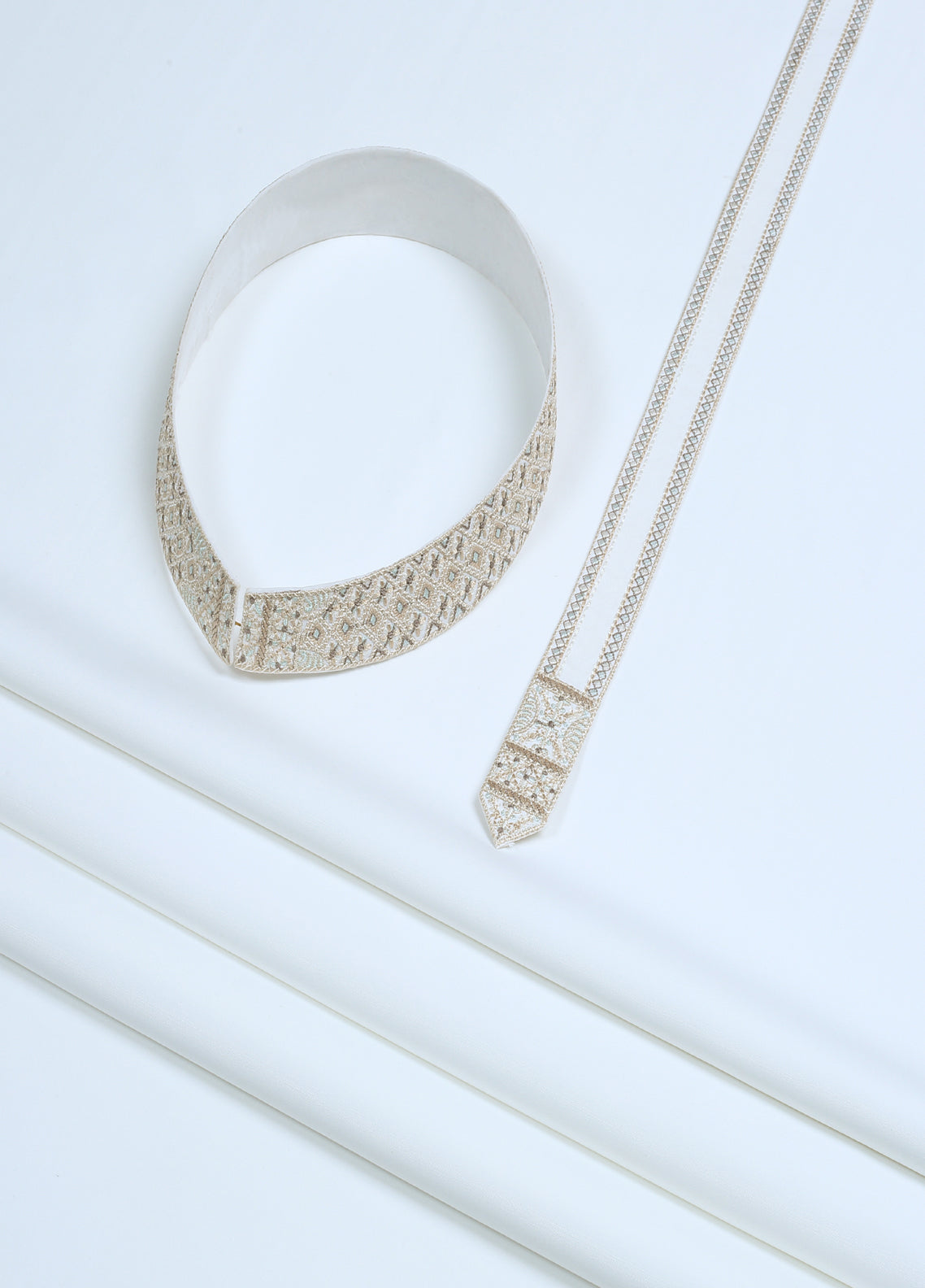 Men Unstitch Embroidered Bann & Placket Kameez Shalwar With Contrast Colors & Signature Pattern Embroidery Design.