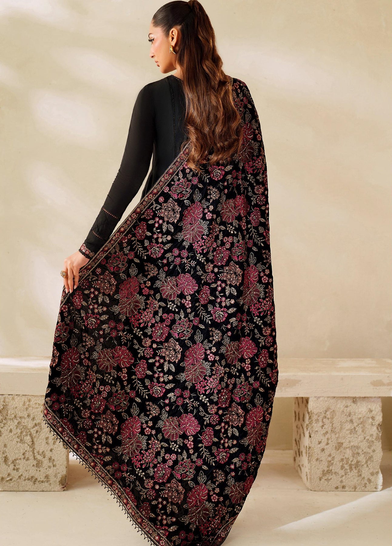 • Sequins Embroidered Velvet Shawl