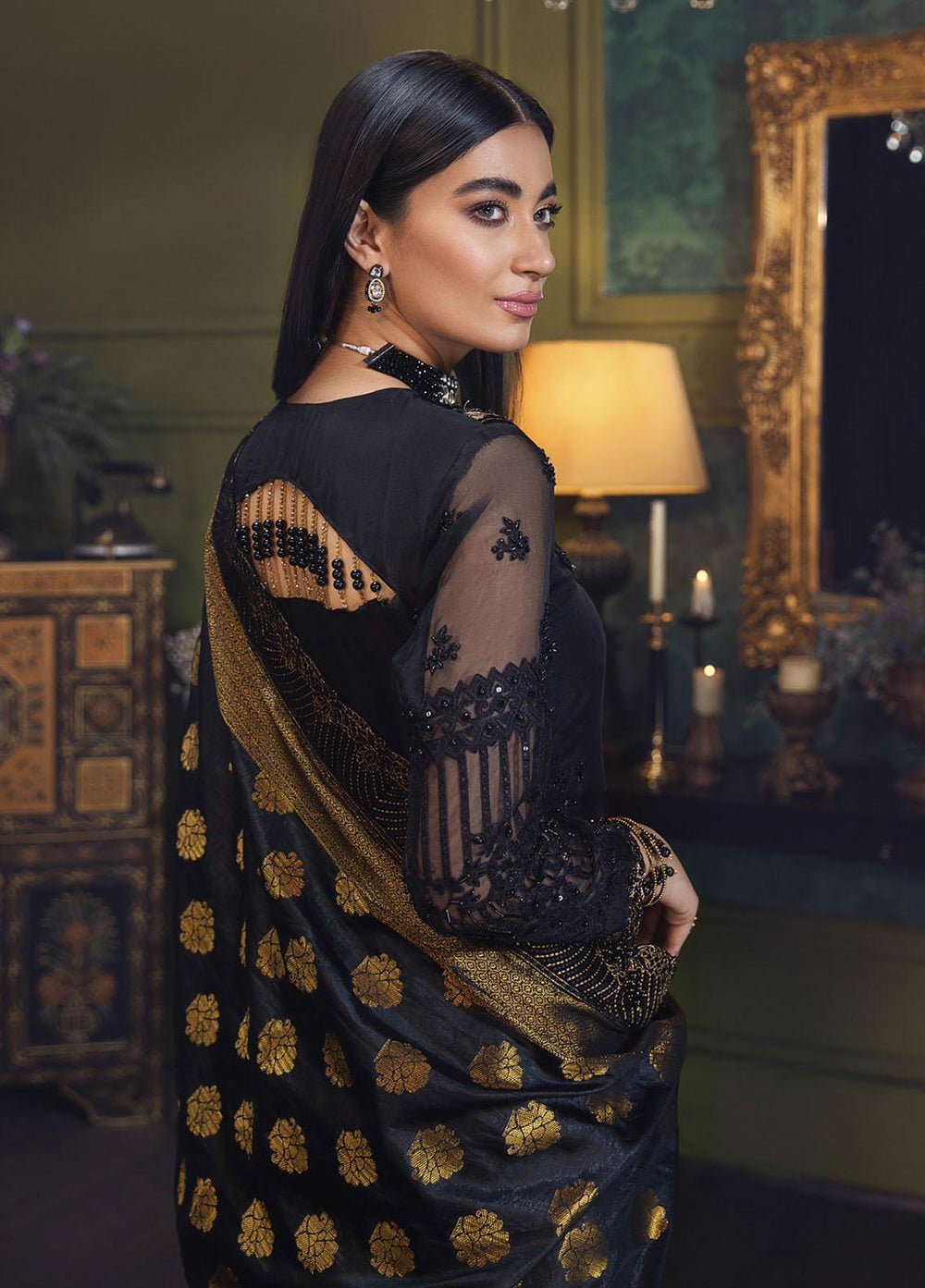 - Embroidered Hand-Embellished Organza Sleeves 0.66 Yard
