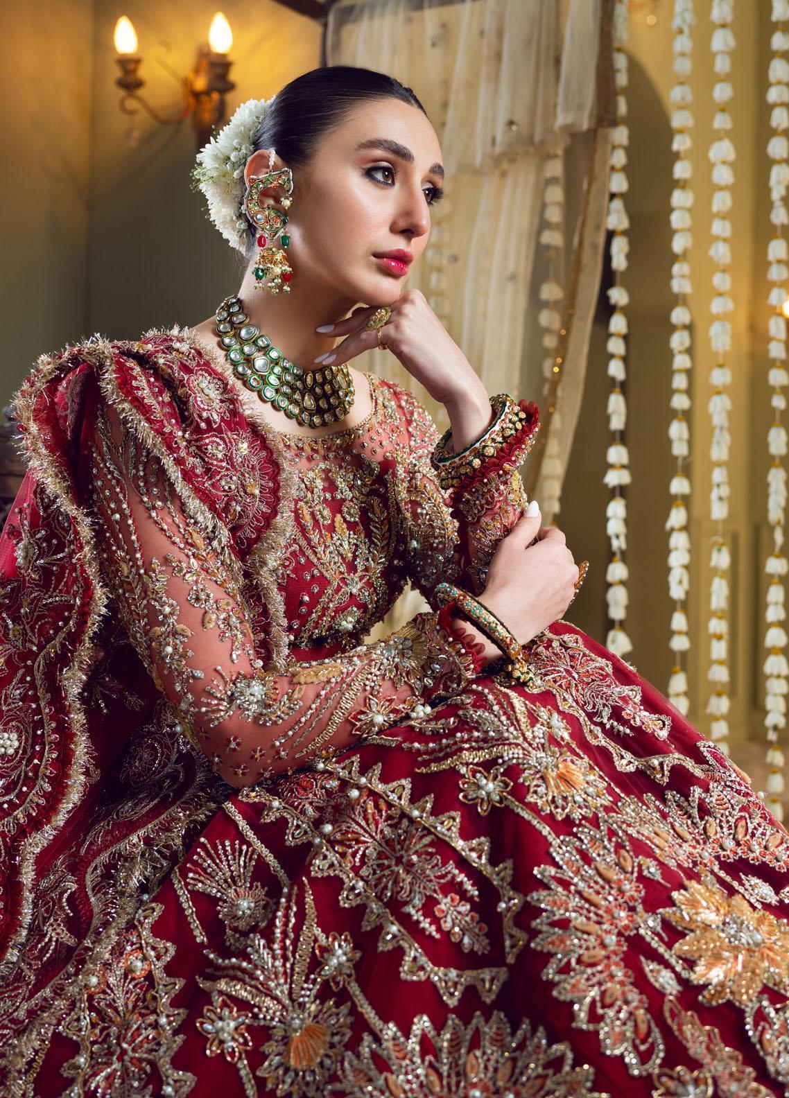 Maria Minahil Luxury Pret  Net 3 Piece Dress MRM23JM MNF-02 Sohana Red