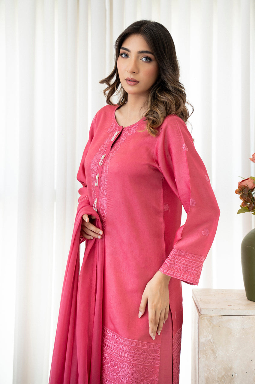 Terracotta/Clay colored shirt with floral embroidery on the neckline and sleeves.