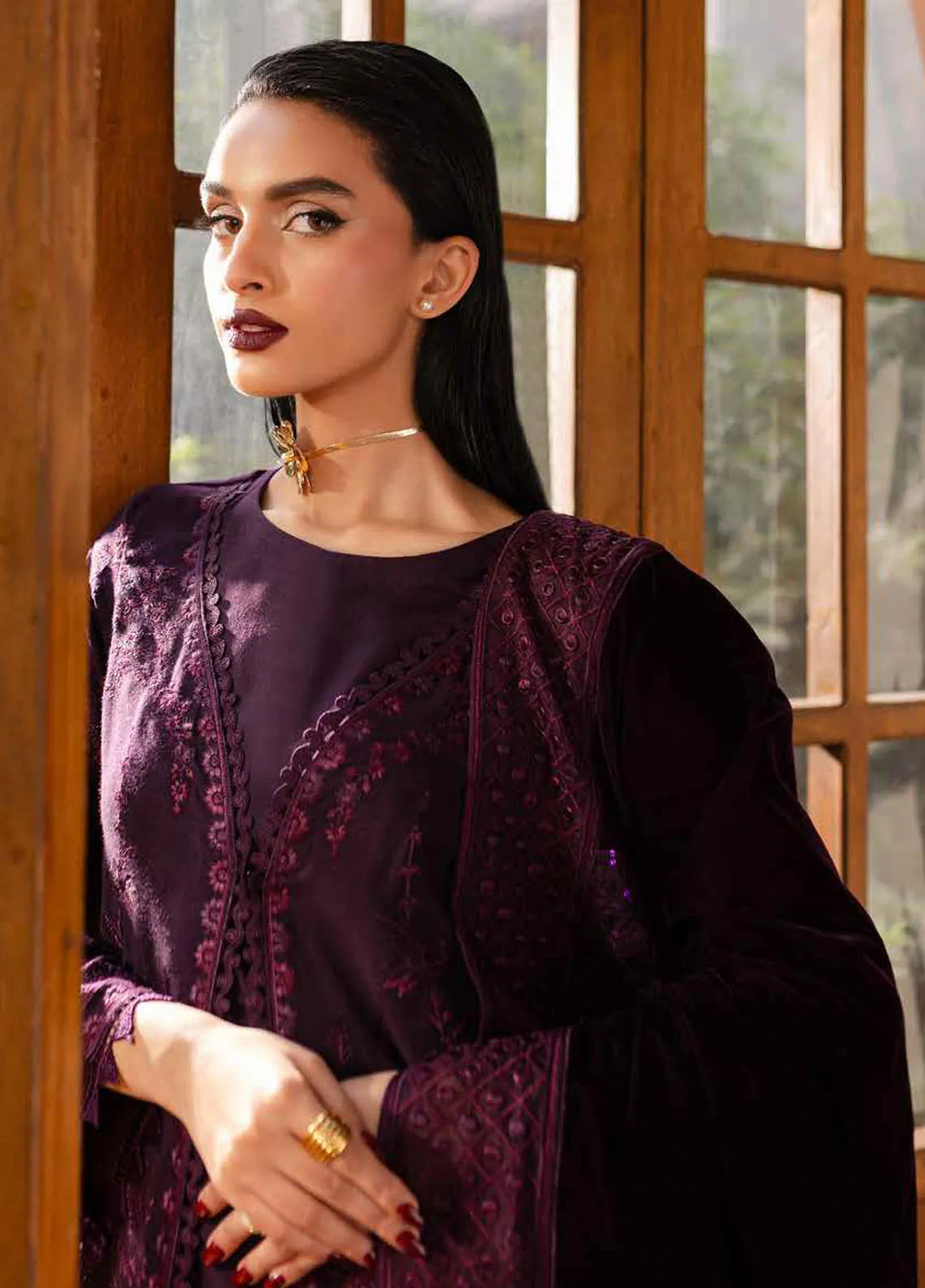 3 Piece Embroidered Unstitched Suits from Nureh Exclusive Unstitched Velvet Shawl Collection 2024