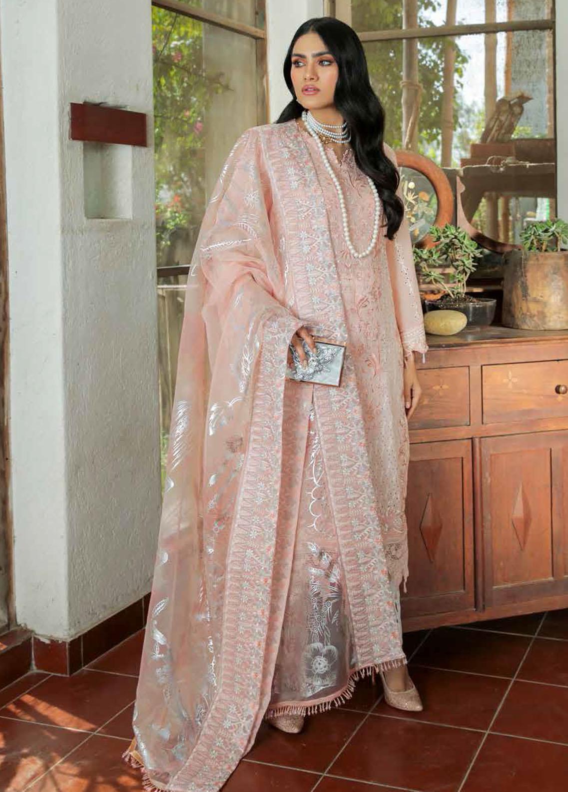 Nureh Embroidered Lawn Suits Unstitched 3 Piece NU22SL NE-34 Peach Carnation - Luxury Collection