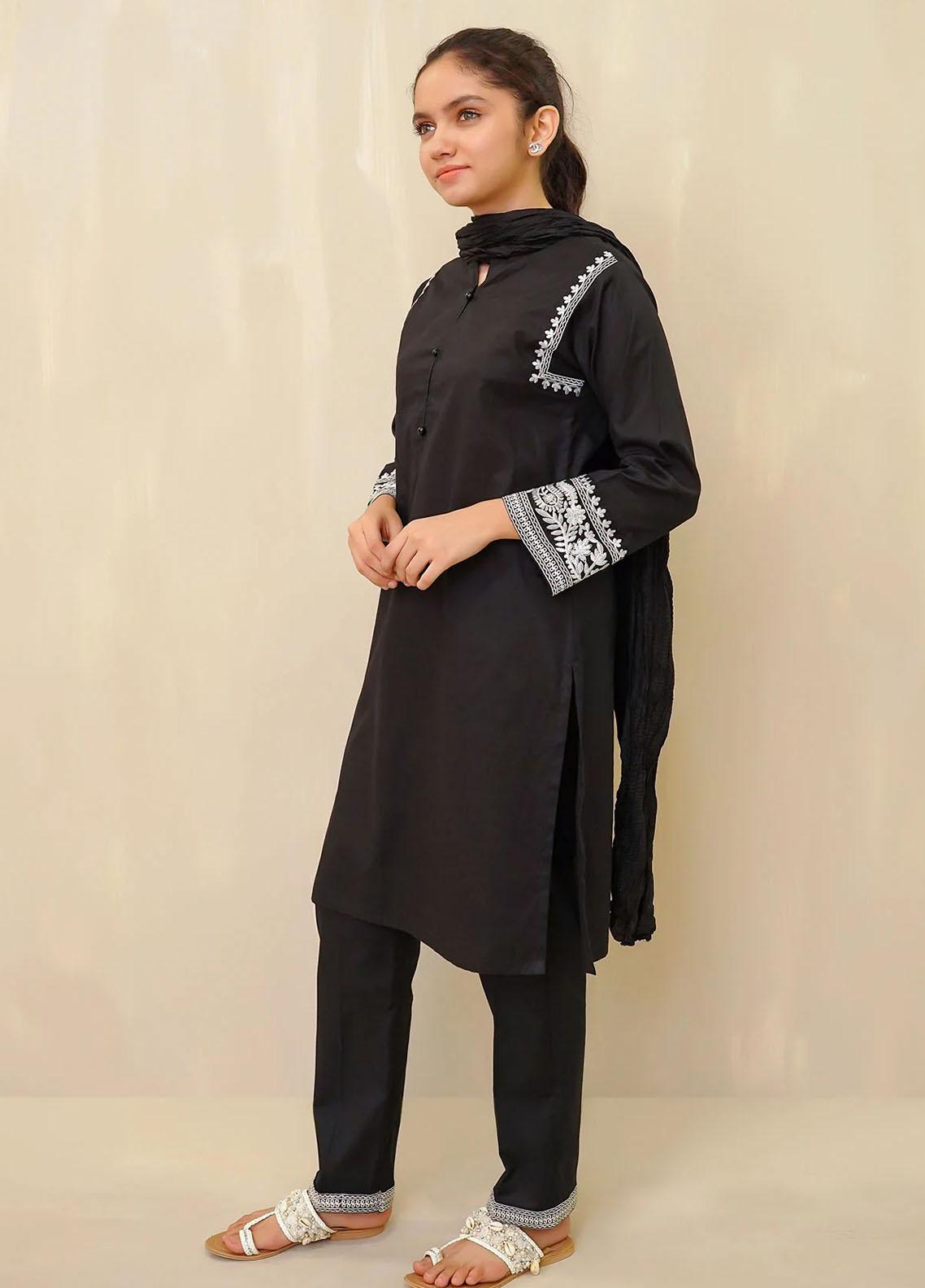 Cotton Embroidered 3 Piece Suit for Girls