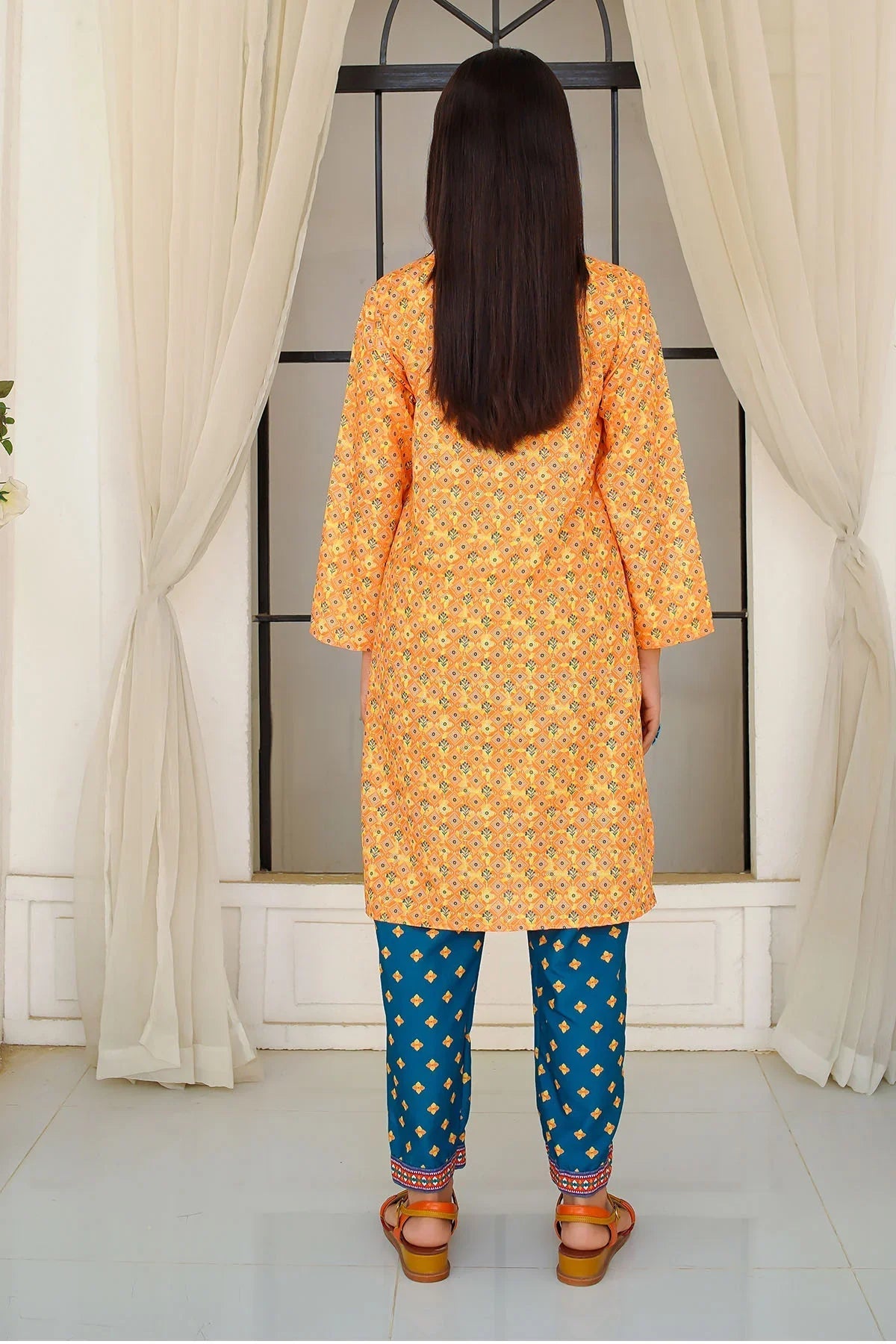 "Top: Mustard Yellow Swiss Lawn Digital Printed Kurta