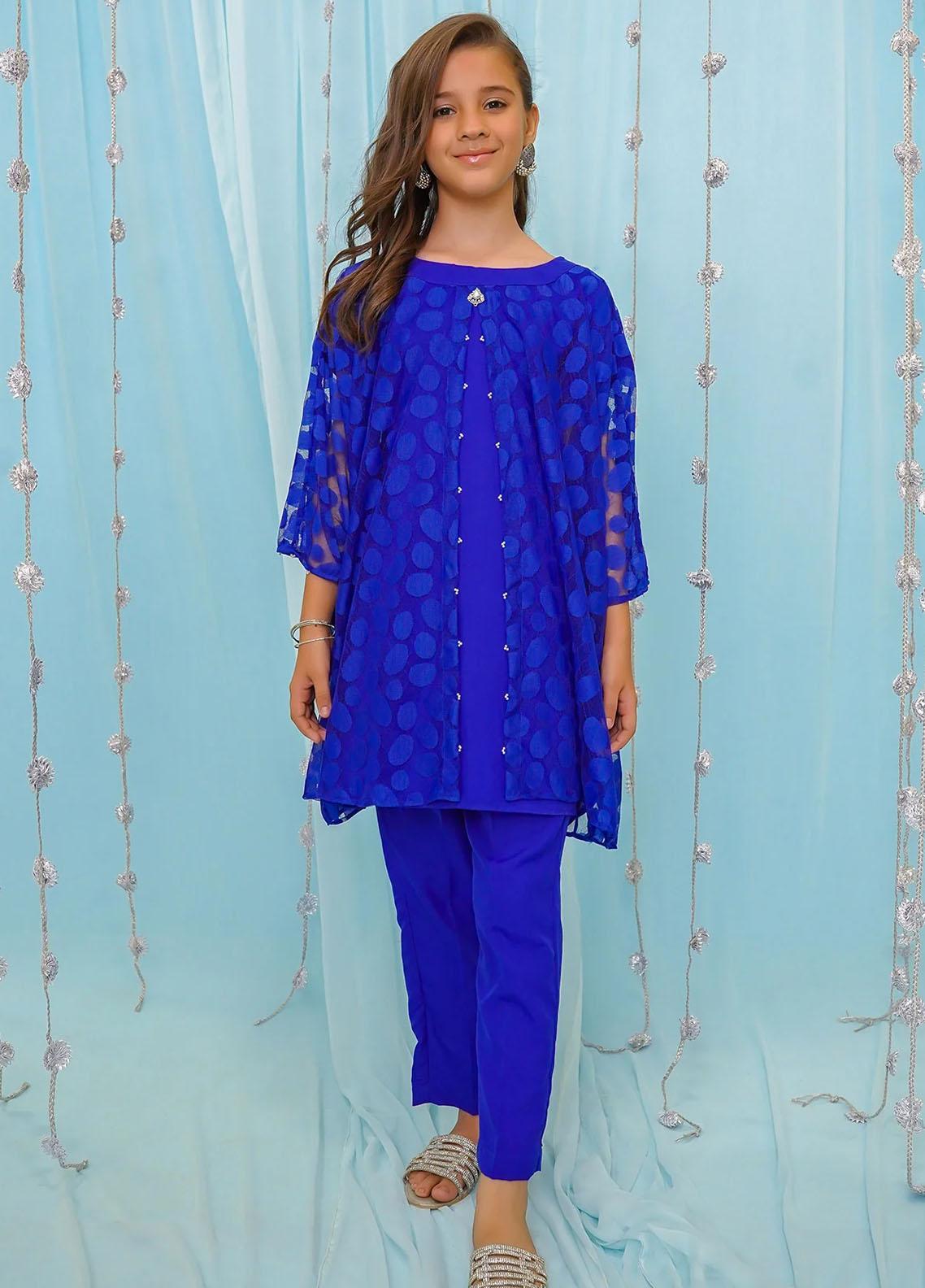 Top Royal Blue Self Embossed Net Poncho With Malai Crepe Inner And Embellishments