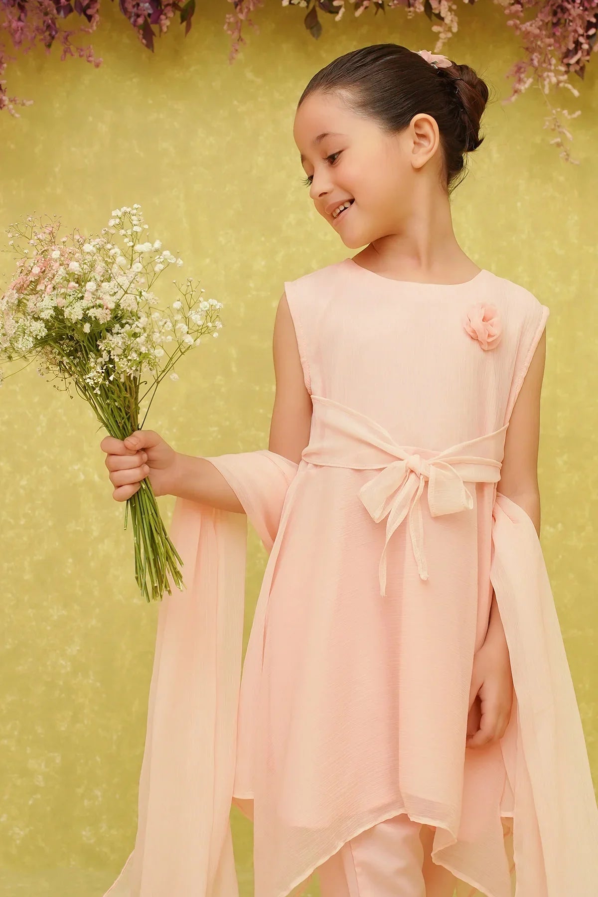 Top: Peach Chiffon Top with Malai Crepe Lining