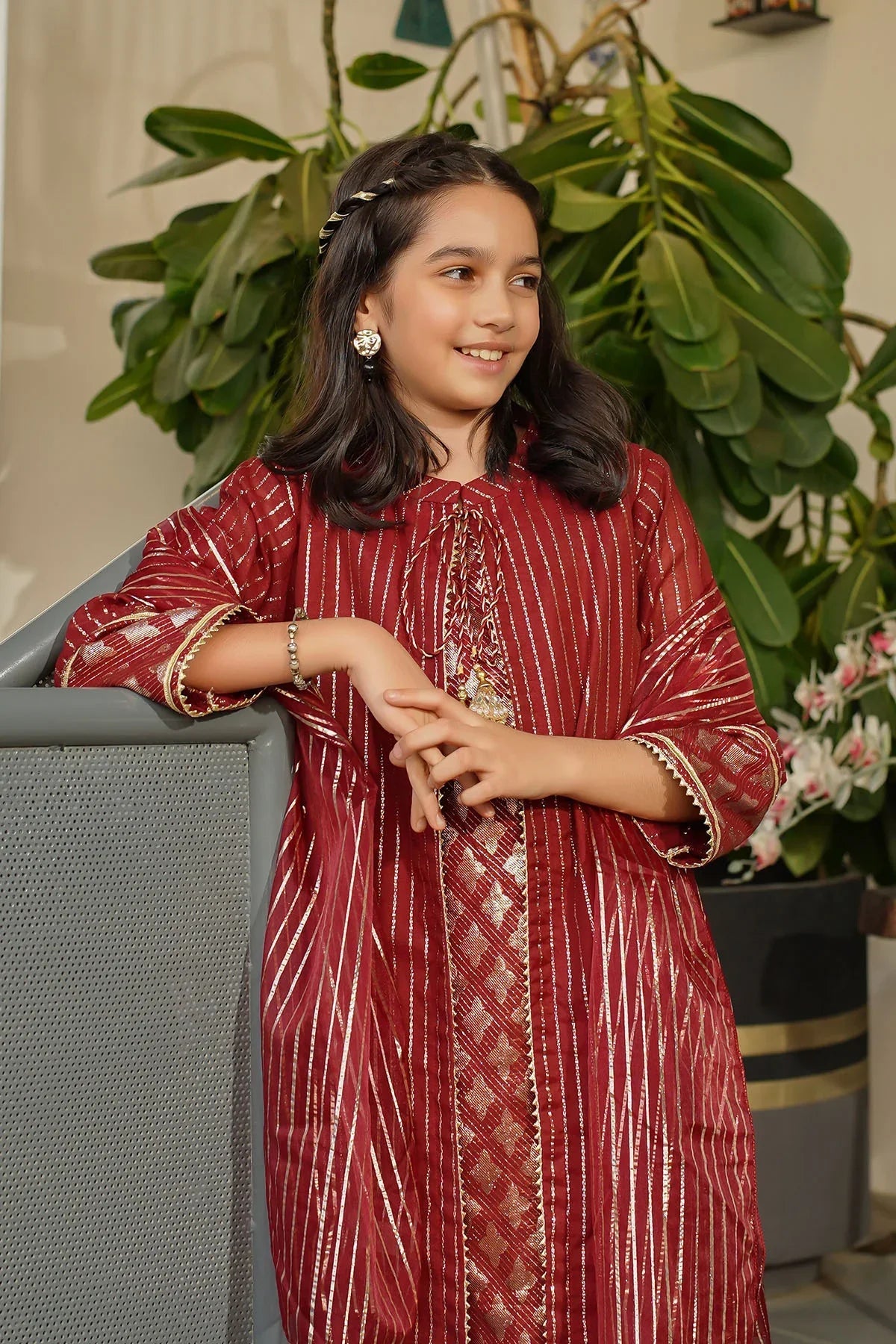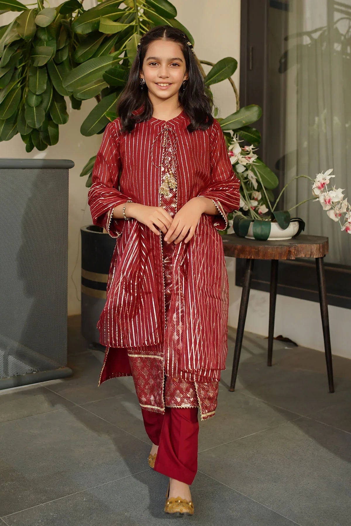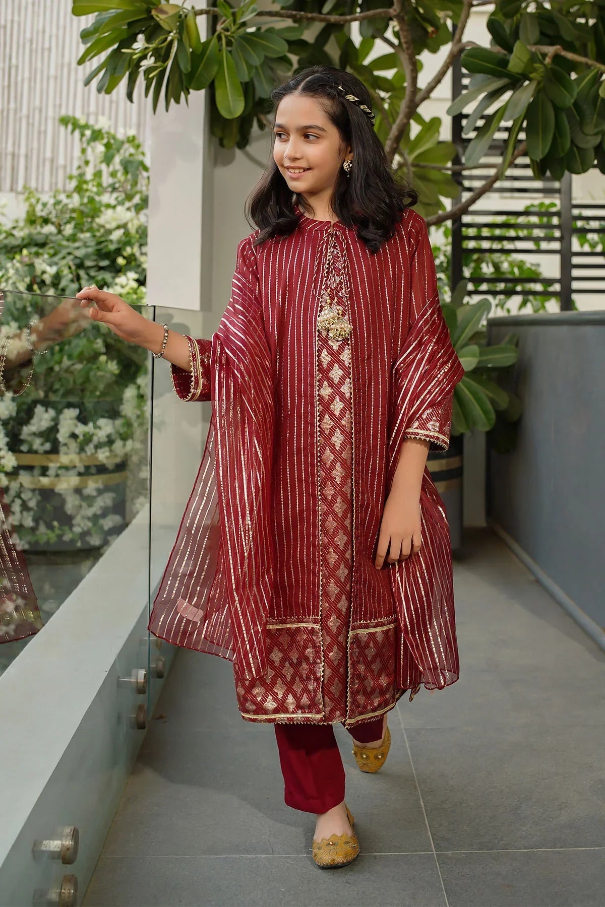 Top: Maroon Zari Jacquard Coat Style Kurta with Tassel, Laces and Malai Crepe Lining