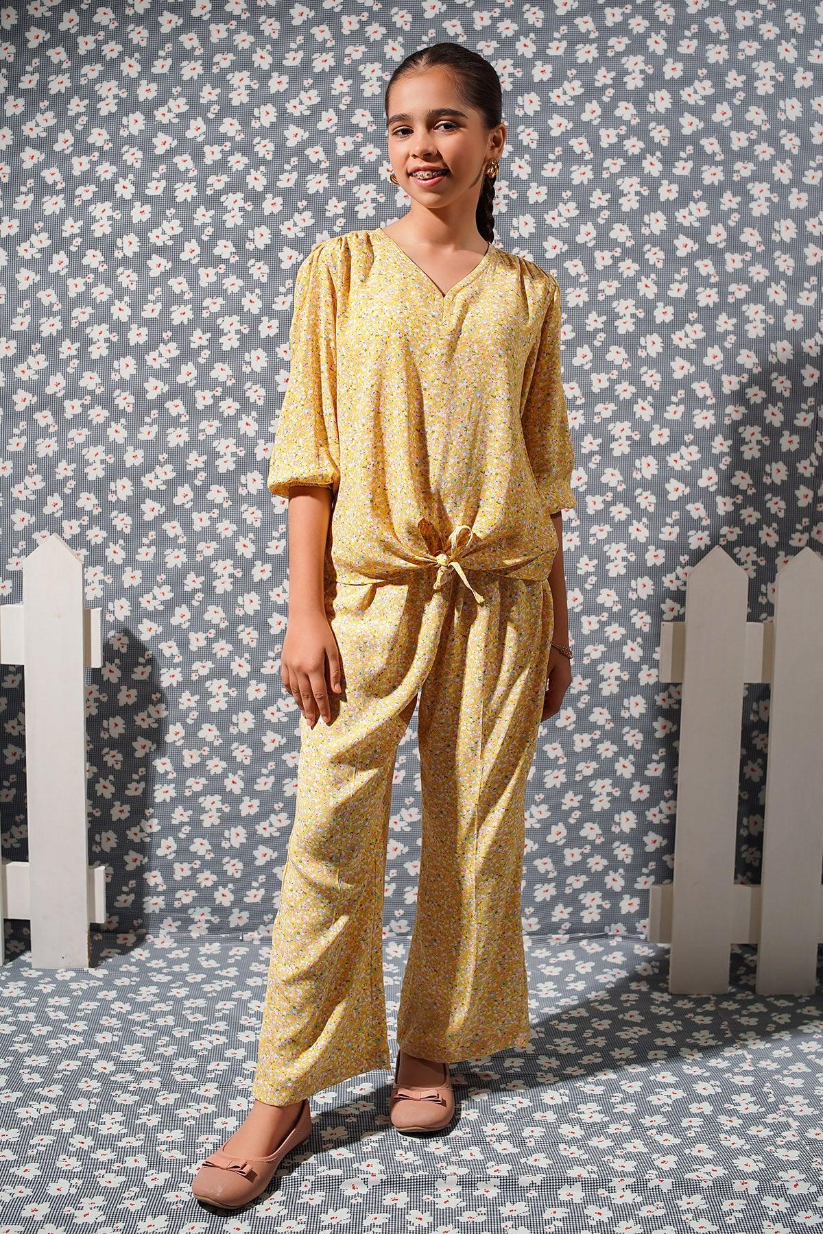 Bottom: Lemon Yellow Printed Georgette Trouser"