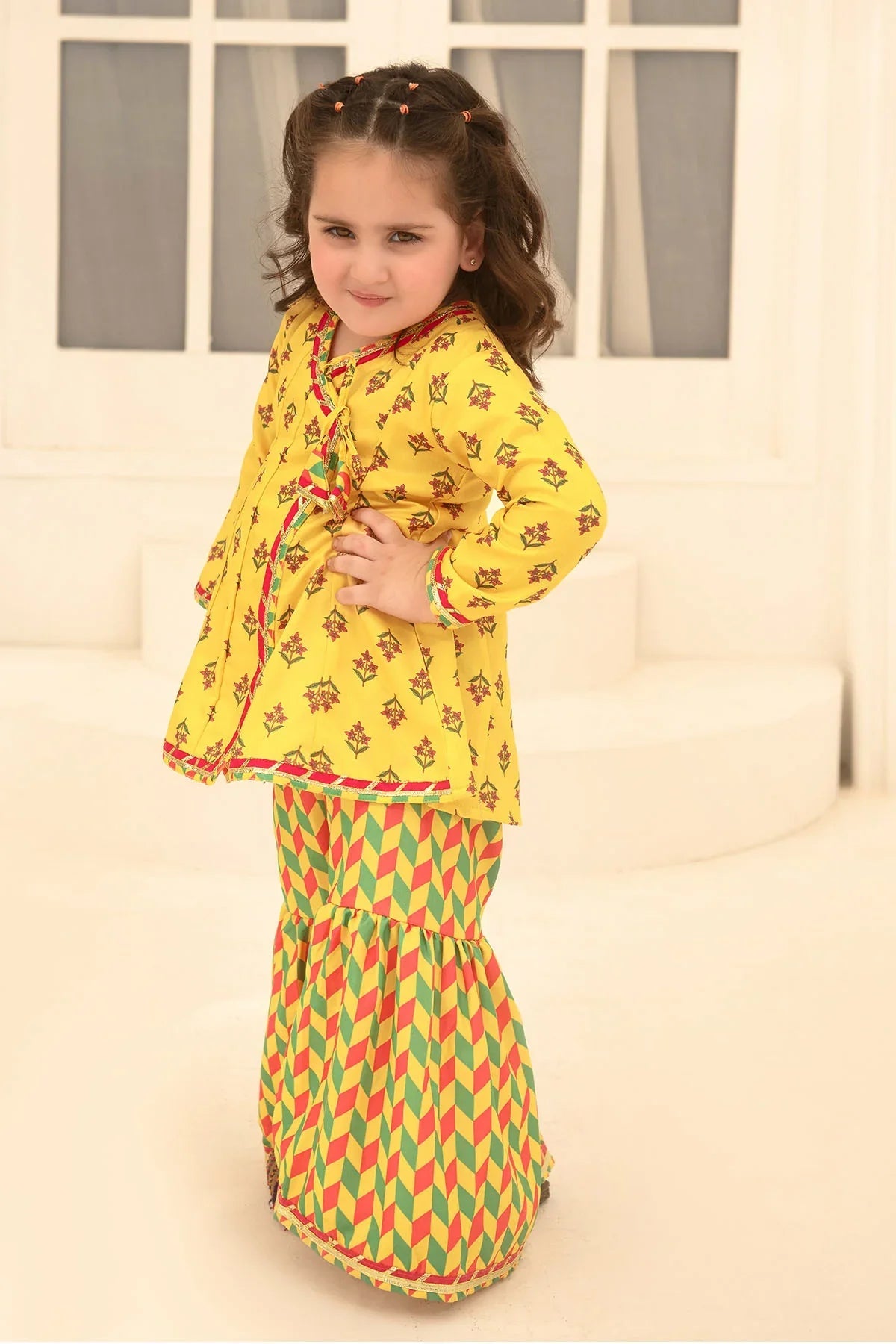 Bottom: Yellow Herringbone Digital Printed Gharara"