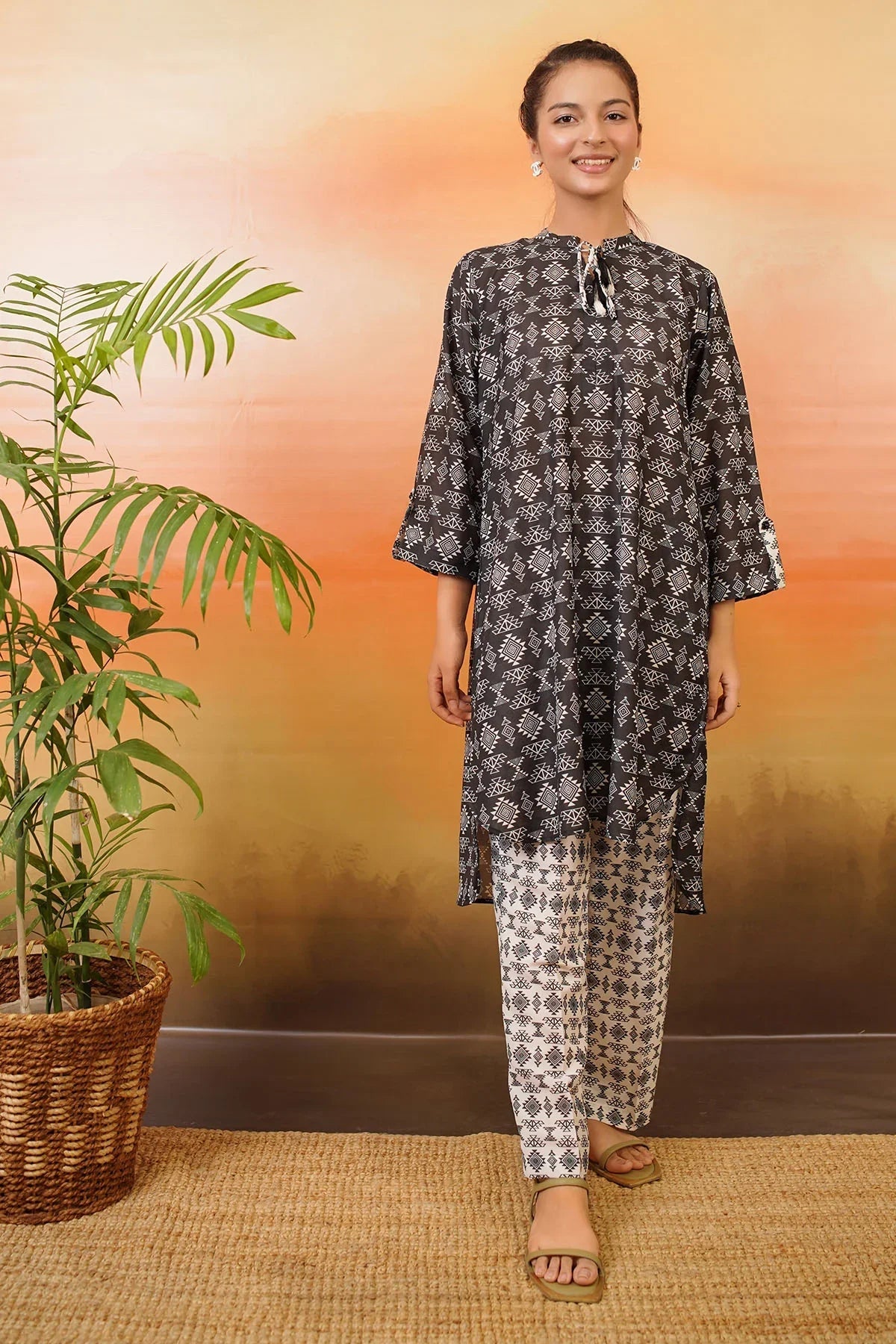 Bottom: Black Swiss Lawn Trouser with Digital Print